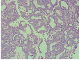 The pathological types of this disease can be varied: solid, multicystic, unicystic, desmoplastic and peripheral ameloblastoma. 15,16 Solid and multicystic ameloblastomas have been identified as the most aggressive subtype, with a high rate of recurrence after local excision. 17 The most common histological type is the follicular, followed by the plexiform; other histological types are the acanthomatous, granular and basaloid. 1 The case presented here had a histopathological diagnosis of follicular and plexiform ameloblastoma, which is the most frequently reported. 1