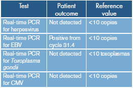 Because of the reported changes, the patient was taken to subsequent vitrectomy with endolaser plus air for diagnostic purposes in order to take samples for PCR (polymerase chain reaction), cytomegalovirus (CMV), herpesvirus and EBV processing, by means of the LightMix technique using primers for EBV and specific probes. 10 copies of the amplified gene were obtained, being positive from cycle 31.4, which led to consider the sample as positive for EBV. No intravitreal treatment was provided. The remaining results are shown in Table 1.