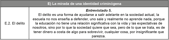 Estas lógicas cultuales generan violencia y reforzamientos de identidades transgresoras, en la generalidad de los casos, y así se confirma en el discurso de este joven. Según Bandura, la construcción de ideas tiene un impacto en los sistemas de representación individual, que se convierten en imágenes y símbolos verbales. Las imágenes pueden ser duraderas o no, según su frecuencia e impacto, mientras que las representaciones verbales, se originan por la codificación del sistema verbal de la realidad observada, y genera una lógica inicial según las características de la interpretación observada. En el contexto social en estudio, la formación de referentes negativos hacia la policía, incide para que los estudiantes desarrollen guiones favorables para su aceptación y para la comprensión de su rol social.