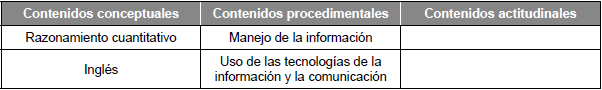Para la elaboración del documento guía del proceso de diseño, aplicación y seguimiento de actividades fue necesario, en primer lugar, realizar un cruce entre las siguientes competencias genéricas propuestas por el Ministerio de Educación Nacional (MEN) que, hasta el momento en que inició este proyecto, tenía como referencia la IES: lectura crítica, competencias ciudadanas, comunicación escrita, razonamiento cuantitativo e inglés, con las competencias genéricas propuestas por el Icfes. Para las demás competencias genéricas propuestas por el MEN se realizó la clasificación de acuerdo con la diferenciación que hace la IES entre contenidos conceptuales, procedimentales y actitudinales (ver tabla 1), derivada del enfoque de competencias, en el que la solución de problemas complejos es posible con la combinación de distintos elementos, entre ellos procesos de pensamiento, teorías, estrategias, métodos y actitudes. Los contenidos conceptuales son los relacionados con el saber; en ellos se abordan conceptos, teorías, fenómenos, leyes, enunciados, modelos, hechos y principios (para esta investigación son aquellos que el estudiante aprende por medio de las competencias genéricas y específicas). Los procedimentales están referidos al saber hacer, comprenden la ejecución de habilidades, estrategias, técnicas o métodos y pasos para realizar acciones. Y los actitudinales están asociados al saber ser; en estos se abordan valores, normas, actitudes, principios éticos, entre otros.