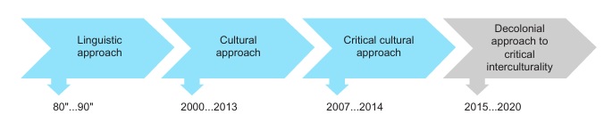 The interest for an intercultural approach in English language teaching has been a constant in the field. A review done by Álvarez (2014) in relation to types of articles published and the characteristics of research on culture in six major refereed journals up to 2011, revealed that the cultural approach to teaching has superseded the linguistic approach. Although our own review is not so exhaustive, it is representative of a move from a relational perspective of interculturality to a critical one. This can be explained by the presence of research topics ranging from intercultural competence (Ramos, 2013; 2017) and intercultural communication ( Olaya and Gómez, 2013) to critical socio-cultural factors ( Bonilla and Cruz, 2014) and critical intercultural awareness ( Agudelo, 2007). This criticality draws on the influence of the critical turn in intercultural communication pedagogy and the transnational critical social theory (Giroux, McLaren, Freire, Morell, Liddicoat) allowing scholars and authors to discuss issues of power relations, including: inequality, subordination, identity and diversity.
