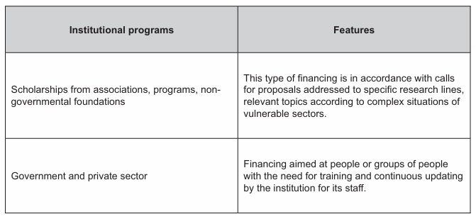 On the part of CONACYT through the PNPC, it is important to point out that, with the national scholarship assignments, national mobility and abroad, granted by CONACYT, students have been able to finance their education from the educational program. Through these postgraduate courses, the IES participates in calls issued by CONACYT and in which the development and strengthening of postgraduate courses can benefit. To mention, during these years it has been possible to collaborate with researchers who participated in postdoctoral stays and had significant participation in the postgraduate indicators. Other sources of institutional and non-institutional financing have been those described in table 3.