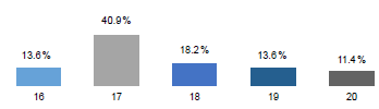De la muestra de 168 estudiantes, 44 estudiantes reprueban el curso. El valor porcentual más alto de reprobación es atribuido a los estudiantes cuyas edades se encuentran entre los 17 y 18 años. El grado de reprobación del curso se relaciona con el grado de reprobación de la prueba de salida del taller para dichas edades. Donde en el primer caso se evidencia un 40.9 % y 18.2 % en edades de 17 y 18 años respectivamente y en el segundo caso un 42.3 % y 23.1 % para la reprobación en la prueba de salida del taller de los estudiantes con 17 y 18 años respectivamente. Se puede inferir que los estudiantes en estas edades que pierdan la prueba de salida son factibles a que pierdan el curso de Cálculo Diferencial.