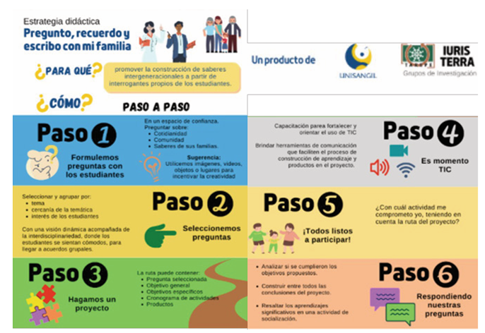 Abstract: The project’s objective was to apply a didactic strategy to promote the construction of citizenship competencies in elementary education students from two santanderean municipalities with an agricultural vocation and a rural population, based on research on intergenerational knowledge with the support of information technologies and communication. The qualitative methodology allowed us to contemplate educational research as a process of searching for options that illuminate pedagogical practice. In the first phase, the didactic strategies implemented by teachers in the region were characterized by interviews and the analysis of the records of student guides and notebooks in times of preventive isolation and alternation; in the second phase, the strategy was designed with the participation of teachers; in the third phase, the strategy was applied in three classrooms; The last phase consisted of the process of reflection on the results obtained. Among the main results is the step-by-step didactic strategy, applied in three classrooms and from which research on the traditional knowledge of the region was promoted. Conclusions include the need to continue training and bringing rural teachers and students closer to information and communication technologies and the educational use of available electronic devices; Community work based on topics from the immediate environment is an opportunity to connect students with their families, their knowledge, and take advantage of the cell phone didactically.