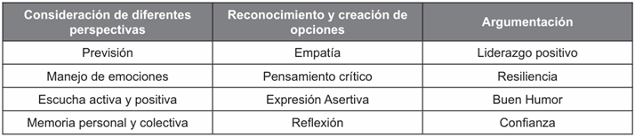 El programa Ciudadanía desde el Aula, desarrollado en la provincia de Guanentá del 2015 al 2018, teniendo en cuenta la propuesta de Ruiz y Chaux (2005), Unicef (2006) así como los saberes de los docentes participantes en el programa, propuso 15 competencias pertinentes para el trabajo de los docentes en aulas de básica primaria y bachillerato ( Barragán, Arias y Barragán, 2017). A continuación, se presenta una tabla con las competencias investigadas por este programa: