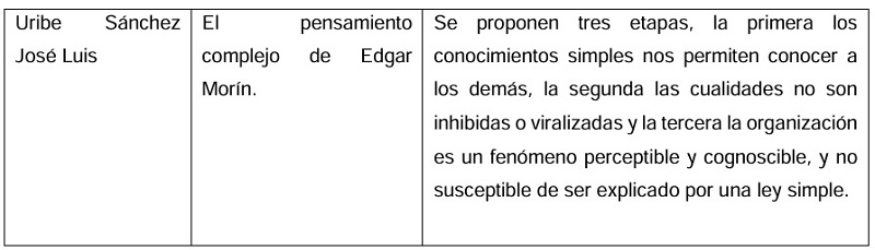Sánchez, J. L. E. U. (2009). El pensamiento complejo de Edgar Morín, una posible solución a nuestro acontecer político, social y económico. Espacios públicos,12(26), 229-242. De https://www.redalyc.org/pdf/676/67612145012.pdf