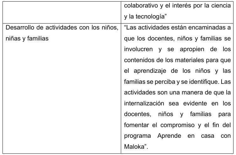 Es de apuntar que las actividades están encaminadas a que los docentes, niños y niñas y familias se involucren y se apropien de los contenidos de los materiales para que el aprendizaje se registre y se identifique. Las actividades son una manera de que la internalización sea cierta en cada uno de los participantes para fomentar el compromiso y el fin del programa Aprende en Casa con Maloka.