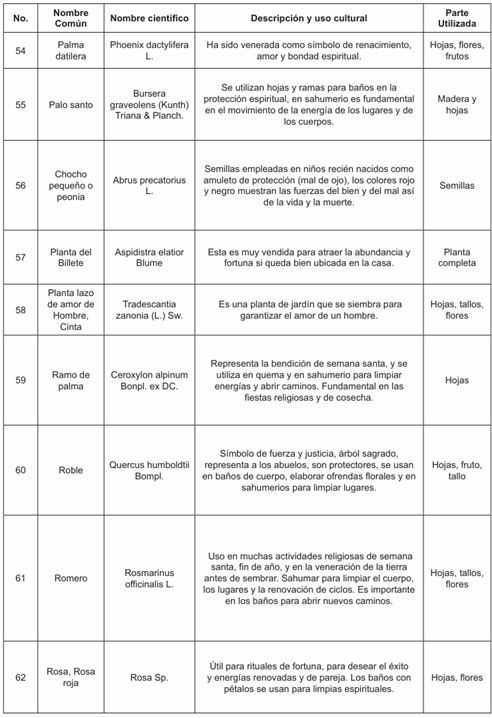 Según lo expuesto anteriormente, este texto centra su atención únicamente en las plantas comercializadas con fines de ritualización o ceremoniales en las dos principales plazas de mercado de la ciudad.