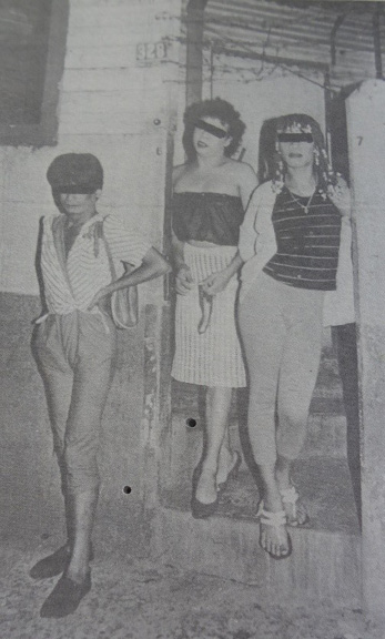 En las dos fotografías que acompañan dicha publicación, es posible observar a varias mujeres posando de manera gustosa, incluso sonriendo. En esta ocasión –al contrario de lo que se vio para la noticia de 1985– hay una barra que censura los ojos. Este ocultamiento de la mirada puede tener varias significaciones, dentro de las cuales –y en línea con el contexto y lo planteado en la noticia– está la peligrosidad y la criminalización de esta población dedicada al trabajo sexual. Además, se les adjudica una atmósfera de misticismo, como lo narra el viceministro de gobernación, Álvaro Ramos: “al incursionar en ellos, me encontré un ambiente de superstición, una mezcla de religión con sexo, practicada por gente de condición baja” (SIDA revela actividad de homosexuales, 18 de mayo de 1987, p. 5). Una vez más, es posible notar el discurso del exotismo.