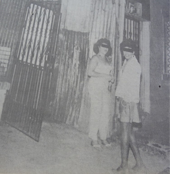 Para continuar con las imágenes, es posible apreciar que el escenario donde se encuentran los sujetos corresponde a un contexto empobrecido: paredes de madera desgastada, latas que funcionan como paredes, entradas estrechas, piso de obra gris, puertas endebles, alambres de púas. En la noticia se hace referencia a los lugares “conquistados” por los homosexuales, principalmente, aquellos cercanos al Cine Líbano y los alrededores de la Coca Cola, espacios urbanos caracterizados por un proceso sistémico de marginalización y empobrecimiento. En el pie de foto se afirma que “los investigadores esperan que los homosexuales cambien sus hábitos” y “no les gusta que los llamen por sus nombres masculinos”. Una vez más sale a relucir el saber científico y la regulación sexo/género dicotómico.