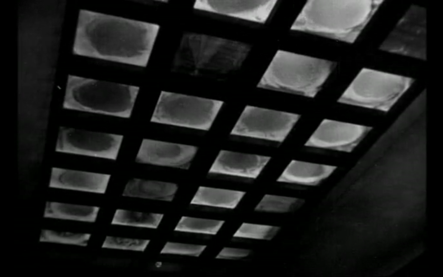 Recordemos que, en la presentación del corto sugeríamos que se nos presentaba una “prisión”, pues he aquí otra metáfora escénica de esto. Una “prisión” cuyas captaciones más interesantes se dan en los múltiples planos que captan la marquesina en contrapicado, lo cual deja ver los pies de los viandantes del exterior. Tal como si el subsuelo en el que está el baño fuera otro mundo, al que, únicamente, ella pertenece. Esta lectura también la comparte Alexander Tylski (2006) y que, además, añade la posibilidad del techo de baldosas (Imagen 8) como otro conector escenográfico más, junto con los recuerdos de la anciana: