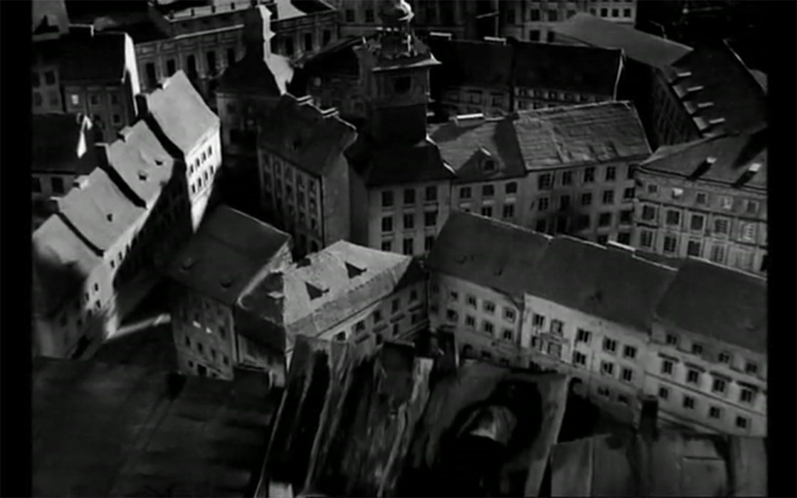 Comenzamos el análisis ubicándonos en la primera secuencia del cortometraje. La historia se abre con la panorámica de una Cracovia en la que apreciamos los altos edificios de época en formato de maqueta, en medio del invierno polaco (Imagen 1). Destacamos de la panorámica ese encadenamiento que se produce entre los edificios, pues todas las viviendas quedan adosadas entre sí, sugiriendo un amurallamiento, no hay casas unilaterales e independientes. De este modo, se nos sugiere una de las posibles y primeras6 muestras de esa concentración y claustrofobia visual que caracterizarán el futuro cine de Roman Polanski. Se nos presenta un mundo amurallado y aprisionado, en donde vive recluida en un “baño-vivienda”, la anciana protagonista de esta historia.