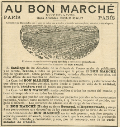 Anuncio de la tienda por departamentos parisiense Au Bon Marché [fotografía]. En La Moda Elegante. (30 de marzo de 1892).
