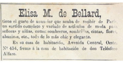 Anuncio de La Moda Elegante [fotografía]. En El anunciador costa-ricense. (16 de junio de 1891). Recuperado de http://www.sinabi.go.cr/.