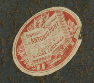 Los ejemplares de La Revista Ilustrada de Nueva York del año 1889 están encuadernados juntos y aún se conserva un pequeño distintivo que reza: “Librería Moderna de Antonio Font - Calle Central sur 10, Apartado 419- San José, Costa Rica” (fig. 4). Se encontraron anuncios de esta librería en el periódico costarricense El Pabellón Español(fig. 5). En el número del 10 de noviembre de 1895, este periódico presenta un anuncio de la Librería Moderna, que incluye el texto: “Suscrición á periódicos de todas partes del mundo. Taller de encuadernación [sic]”. Así, es posible afirmar que esta librería manejaba las suscripciones a La Revista Ilustrada de Nueva York y encuadernaba los números recibidos cada año.