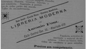 Anuncio de la Librería Moderna [fotografía]. En El Pabellón Español (10 de noviembre de 1895). Recuperado de http://www.sinabi.go.cr/.