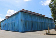The UFCO central offices of Costa Rica located in Limón, of 3528 m2, were built between 1903 and 1904. The building is strategically located in front of the railroad station, customs, the wharf and the green areas of the railway. Its architectural style is Victorian Caribbean, with perimetral corridors and steel handrails (Sanou & Quesada, 1998, p. 286). These offices are one of the few buildings left from beginning of century and were declared a privately owned patrimony in February 18th, 19995. Attempting to flip this suppressed history, Figueroa utilizes the light blue plastic wrap that is used to protect the bananas from pests, while endangering the workers’ health, to cover up from bottom to top the UFCO central offices.