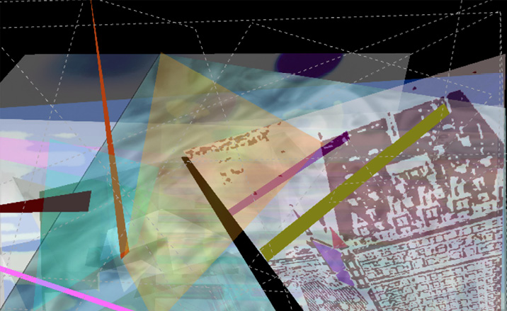 Este paseo por Street View permite reconocer algunas vistas tridimensionales, pasando por la manipulación figurativa de las fotos de geo-localización a la construcción detallada. Esto para integrar algunos principios del arte moderno como la dimensión abstracta que captura la totalidad de la imagen urbana por medio de pautas gráficas. Acá el formalismo tiene su lugar integrándose al proceso de construcción de la obra, ya sea generando una pintura, un grabado o hasta una instalación de video5.