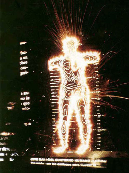 Serie Explotarte. “El manantial como fuego” (1987). Escultura efímera realizada con fuegos Art-ficiales, Tenochtitlán City, SOHOndesa Village.