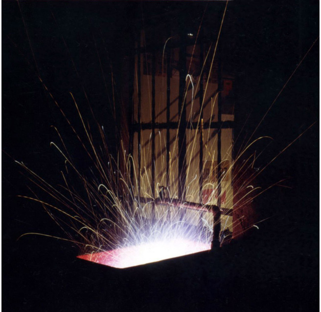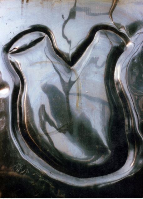 Serie Explosiciones. “El espesor del presente” (1990). Dinamita y nitroglicerina sobre acero inoxidable, 120 x 80 cm, Nortwood, New Hampshire, USA.