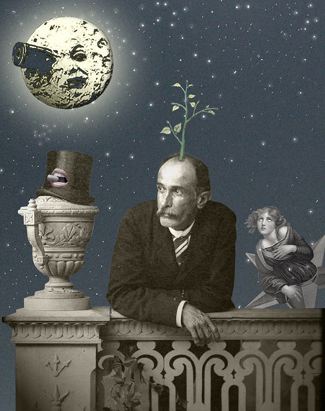 La utilización del icono de la luna sacada de la película que data de 1902, Voyage á la Lune del pionero Georges Méliès, permite el traslado, a su vez, en una espiral de significantes a la obra de Jules Verne que le inspiró: De la Terre á la Lune. Lo que Méliès inventó es una manera de poner la representación cinematográfica al servicio de la ilusión. Esta luna deviene un ícono de la magia del montaje por desaparición y sustitución de elementos. Es lo extradiegético que se ha posicionado en el lugar del punctum, zona de atracción semántica según Barthes (1982, p. 64). El personaje pasa a ser el contexto y no el protagonista. La ensoñación que se le atribuye deviene entonces en elementos cinematográficos.