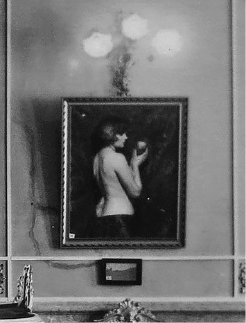 Dentro de las placas originales que se conservan en los archivos del Teatro, realizadas por Manuel Gómez Miralles, destaca una en la que se contempla colgada en la pared: un semidesnudo de mujer con una manzana en la mano. Dicho cuadro es de autor desconocido, sin embargo, destaca por su gran realismo, tomando en cuenta que la gran mayoría de las obras y los artistas que se mostraron en esa ocasión pertenecían o tenían gran influencia del impresionismo. En esta, una mujer muestra su espalda descubierta mientras que entre sus manos sostiene una manzana: inevitable relación con el mito de Eva. En las notas de prensa se habla de los paisajes, de la belleza de las esculturas, pero nadie menciona este desnudo, el cual –luego de revisar las crónicas y las publicaciones de la época– es el único desnudo que se presenta en la exposición. Resulta también importante mencionar que varios de los artistas argentinos que mostraron obra, trabajaron el desnudo artístico; no obstante, la mayoría de las obras exhibidas fueron paisajes, retratos y escenas campestres.