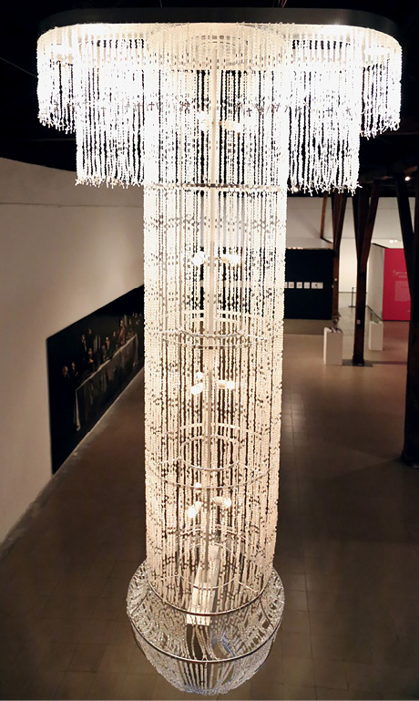 En medio de este panorama surge Roberto Guerrero (1978), uno de los artistas jóvenes que con mayor solidez. Desde el inicio de su carrera, este ha ido trabajando el tema de su propio cuerpo, cargado de elementos simbólicos. La apropiación iconográfica desde lo lúdico con elementos que resquebrajan el concepto de la masculinidad, la represión, el homoerotismo y la teoría queer ante la represión sexual. Su trabajo ha integrado la fotografía analógica y digital en diferentes formatos y materiales, así como la instalación y el videoarte. En su exposición retrospectiva Vergüenza Ajena (2015), también ganadora del Premio Nacional Aquileo J. Echeverría (2015), un enorme falo de cristales iluminados, suspendido del techo de la galería, recibía a los espectadores (Fig. 15), quienes se veían inmersos en medio de un discurso difícil de digerir en una Costa Rica que se atreve a la tolerancia hacia algunos sectores de la cultura sexual marginal pero, a la vez, se enfrenta con las directrices religiosas y la doble moral.