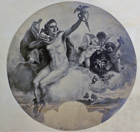 Tanto las esculturas e imágenes traídas por Tomás Povedano como sistema de enseñanza para la Escuela Nacional de Bellas Artes, como sus propias obras –tanto aquellas realizadas para la inauguración del Teatro Nacional como las colocadas más adelante– son imágenes en las que se puede apreciar el cuerpo; no obstante, fueron censurados los genitales tras una hoja de parra, se suprimieron los pezones y se anuló cualquier otra señal de erotización. El Medallón de la Abundancia (Fig. 7) muestra una figura de un Mercurio casi andrógino, en un cuerpo asexuado. Resulta interesante destacar aquí las figuras zoomorfas de la decoración de los muebles del foyer, en las que seres con pechos firmes y pezones erectos se esconden bajo la cara de personajes bestiales. Más adelante, con la llegada de bailarinas famosas y exóticas –como la célebre, amada y odiada Tórtola Valencia, la cual encarnó un hito de la sensualidad y la ruptura de la moral–, se generó mucha controversia en la época. Es entonces que en las estampas donde aparecen estas mujeres, así como cualquier imagen que se acercara a esas características, se consideraba como un objeto hiriente para la moral del momento.