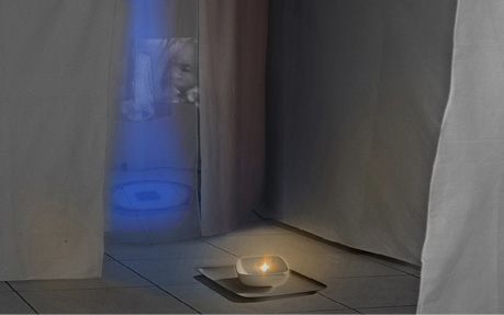 Dentro de estos objetos diseñados también podemos contar con los espacios de carácter ritual (que posibilitan una experiencia particular que se sale de la cotidianidad del presente para entrar en “el tiempo trans-histórico”) coincidentes en las diferentes zonas geográficas del mundo. Derivado de esta premisa, en mi instalación artística, se utilizaron como referentes los sitios de meditación como el templo, el lugar para ceremonia del té, entre otros. Estos sitios permiten una sensación de resguardo, una especie de útero protector (estableciendo una interesante relación con la supervivencia), que podría ligarse al concepto del “paradigma de la tranquilidad”, del cual parto para desarrollar el diseño del espacio instalativo. En este sentido, de acuerdo con Hernández “[…]el estado de tranquilidad se genera cuando el análisis del contexto da como conclusión la ausencia de peligro, correspondiente a los parámetros esperados en las bibliotecas asociativas” (1998).