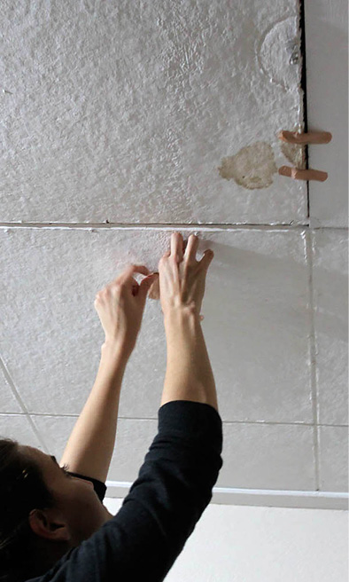 Pertinente al caso, contamos con dos ejemplos que surgieron de los experimentos de Arce con los estudiantes en La Casa de Peke o Casa Mágica. El primero fue concebido por Ana Lucía Rodríguez, quien intervino las grietas de las paredes y el techo de la casa con curitas durante el transcurso de la noche. El otro ejemplo, dispone el cuerpo de la artista Sofía Solís, vestida de buzo, a lo largo de un espejo de agua vacío, que ella llenó de bolsas de plástico y agua. El espejo de agua está ubicado en un espacio muy reducido entre un ventanal y la escalera en el interior de la casa, en el cual su cuerpo calzaba a lo largo y a lo ancho perfectamente.