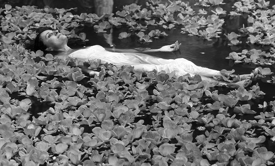 Cuando intento indagar para tener una respuesta al desafío de la interpretación, la propuesta me intimida a rastrear datos visuales y contenidos que me conecten a la situación presentada, reconocer el terreno, el campo de actuación y, de esa manera, fundamentar al sujeto de estudio. De inmediato advierto claras recurrencias de simbolismos latentes como volver al útero, o la gran caverna del mundo, donde seremos renovados y de donde emergemos ataviados de pureza e inmaculado blancor. Ella lo experimentó, como se dijo, en la pieza que mostró en Teruel, España, Cuerpo Geométrico, donde edificó el espacio de aquel cubo, el cual estuvo recubierto por una enorme fotografía de su cuerpo, y a cuyo interior se podía ingresar a través de una abertura en la zona del vientre. Para esta nueva propuesta, el sentido de esos simbolismos suman al agua, al estanque de los nenúfares, y otras texturas ataviadas de referencias orgánicas propias del entorno de un jardín; ella renace en una naturaleza profusa de intensos verdores –como la pintura de Millais–, donde el sujeto es parte de un gran sistema que todo lo gobierna pero, a la vez, va en busca de la autonomía de ser y estar. Lo anterior, en tanto desafío, implica lucha, aprendizaje, manifestación, independencia y toma de conciencia.