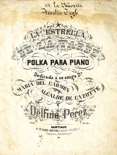Estas mujeres no se presentaron nunca como compositoras, si no que dicho quehacer constituyó invariablemente una característica que complementaba su rol de “madre republicana”. Tal es el caso de Delfina de la Cruz, quien para la historiografía regular aparece como una dama de la oligarquía, esposa de Aníbal Pinto, muy entregada a las obras de beneficencia, pero que para los escritos musicológicos aparece como una dama de la alta sociedad compositora de música de salón. Su accionar público, al parecer, nunca se cruzó más que de manera anecdótica con su labor creativa, pese a que su vals El Copigüe fue reseñado positivamente por la prensa de la época (El Ferrocarril, 1856). Pese a esta realidad, se evidencia en estas mujeres una actitud un tanto paradojal puesto que pese al pudor que expresaban y que la opinión pública tanto resguardaba, existió en ellas una gran voluntad por editar, publicar y comercializar sus publicaciones. Por ejemplo, Delfina Pérez publicó 11 piezas de este repertorio y fue la compositora chilena más editada durante el siglo XIX y cuyas piezas tuvieron la mayor circulación para el período. También es necesario señalar que existió un grupo de mujeres que, pese a que compusieron piezas que se conservan en álbumes, dichas creaciones nunca fueron editadas para la venta pública. En estos casos es más difícil determinar si fue por causas materiales o por pudor. En este sentido puedo mencionar como ejemplo Recuerdo a los Héroes de Iquique de Teresa Verdugo.