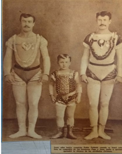 El hermano menor de los Podestá, Cecilio Pablo, nació el 22 de noviembre de 1875 en Montevideo, Uruguay, y falleció en Buenos Aires el 26 de abril de 1923. Desde muy temprana edad formó parte de los espectáculos circenses que lideraban sus hermanos José y Jerónimo (Imagen 5). Participó en las giras nacionales e internacionales y, con tan solo 4 años, fue laureado en Río de Janeiro por las pruebas realizadas en el trapecio junto a su hermano Pepe. Allí, realizaba “El vuelo de los cóndores” con sensacional éxito (incluso el Virrey asistía asiduamente a las funciones que brindaron durante dieciséis semanas en la ciudad brasileña).