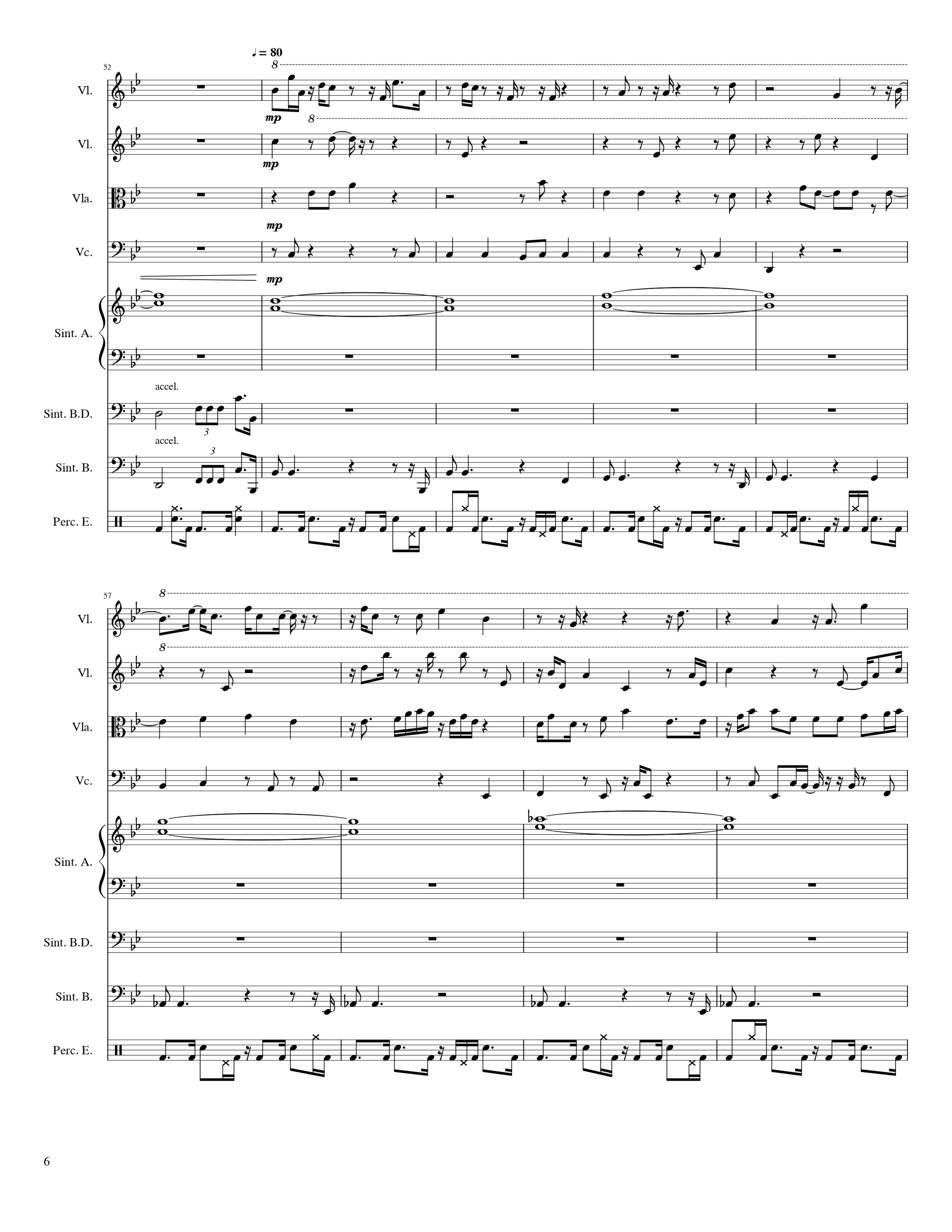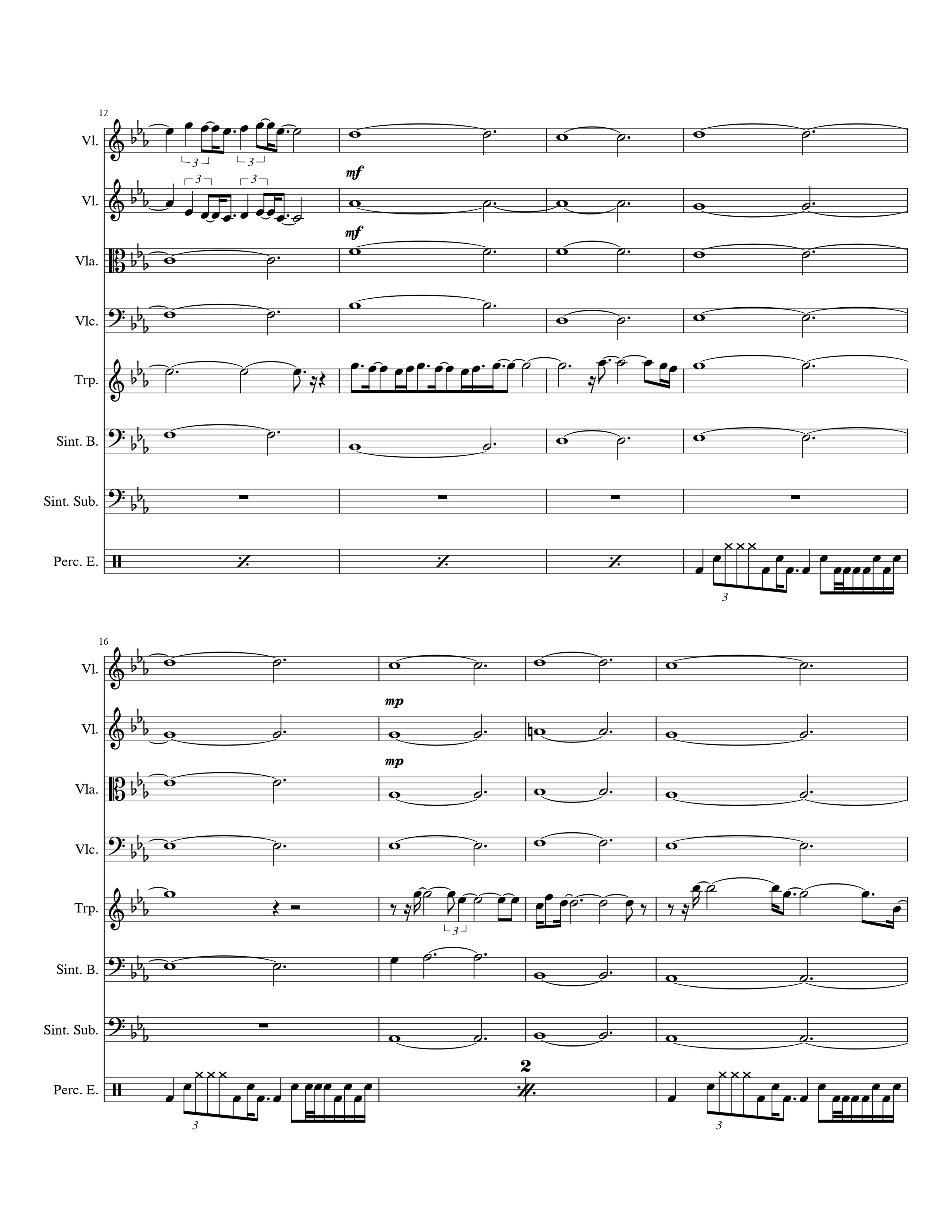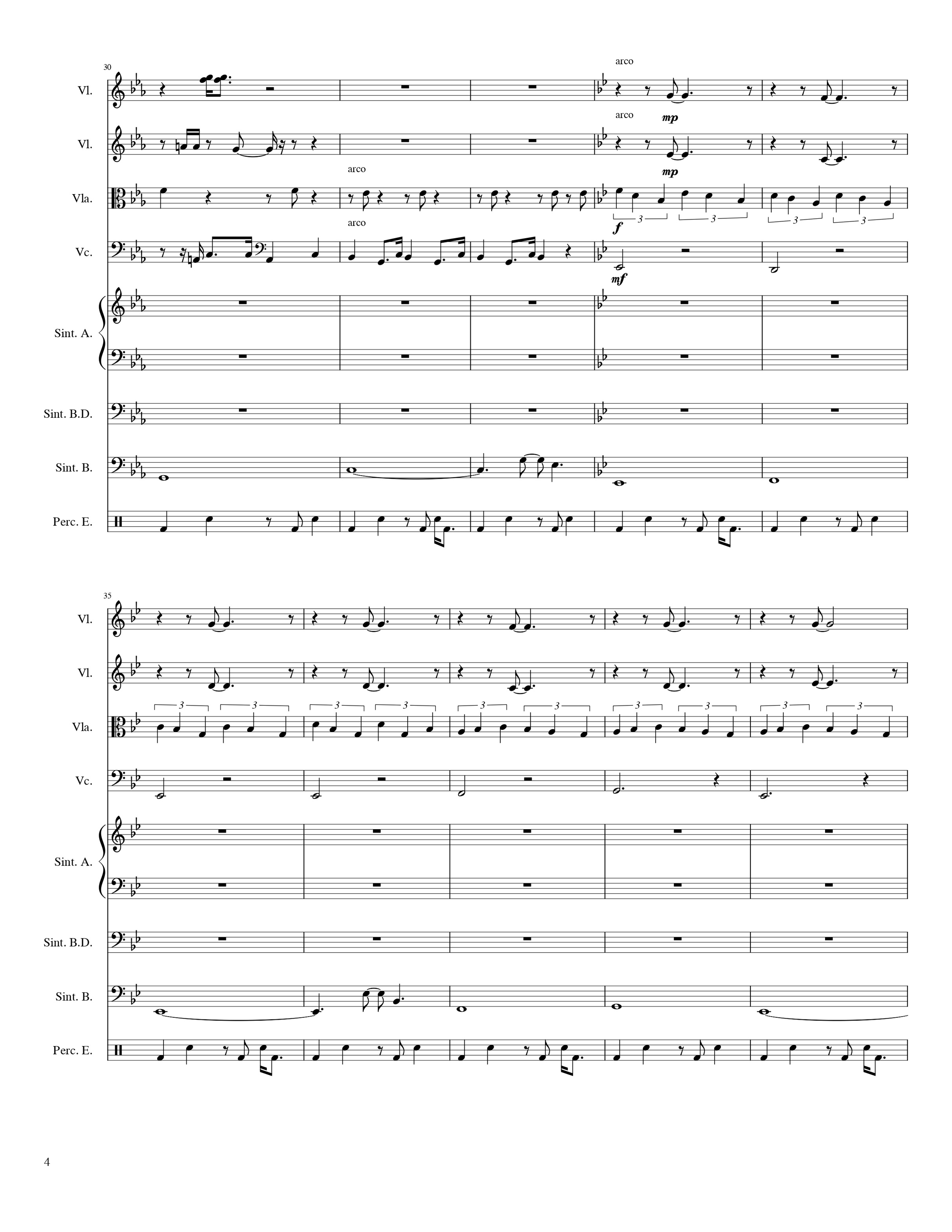 En cuanto a la percusión electrónica, se extiende una invitación abierta a las personas intérpretes para participar de manera activa en el diseño de las sonoridades. Para la grabación mencionada, se utilizaron los timbres del Roland 808. En el caso específico del tercer movimiento, dada la naturaleza repetitiva de la sección percusiva, se sugiere la programación de bucles que contengan las diversas variaciones para que puedan ser reproducidos en la secuencia adecuada.