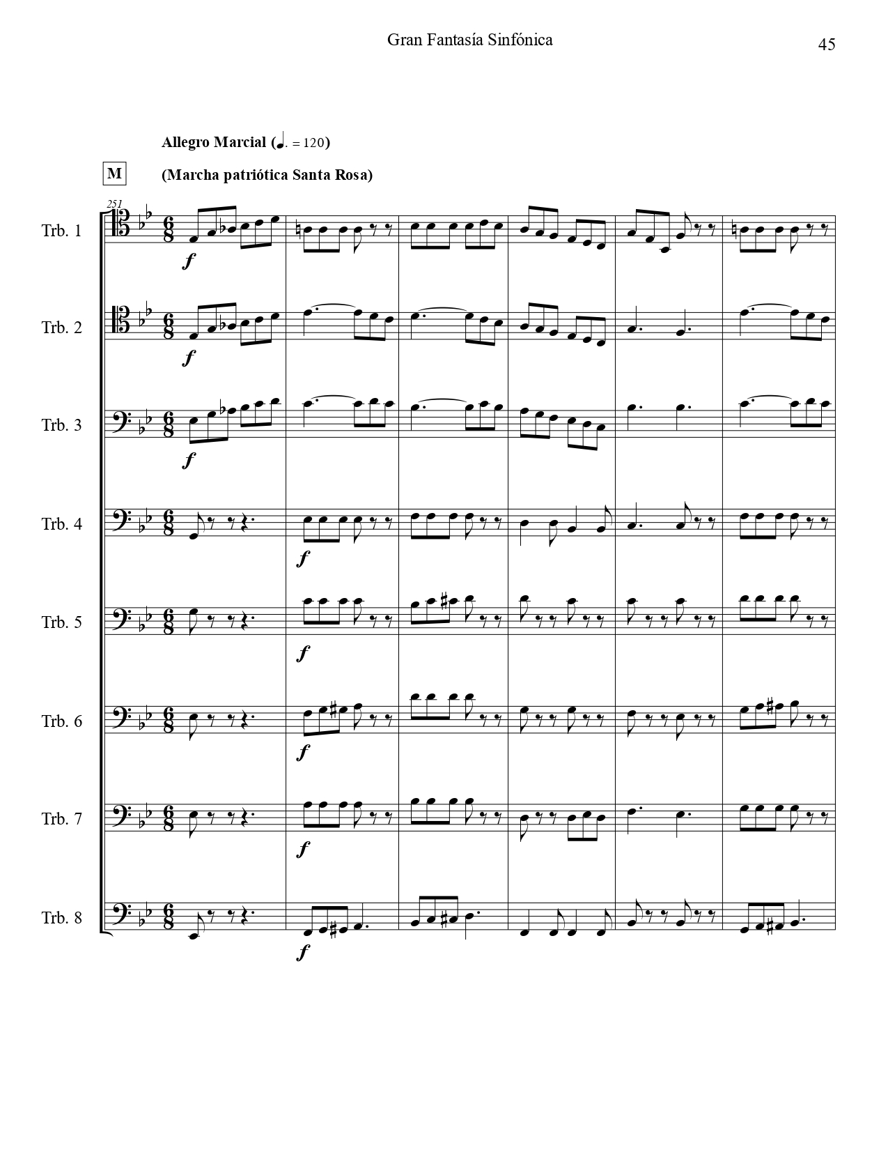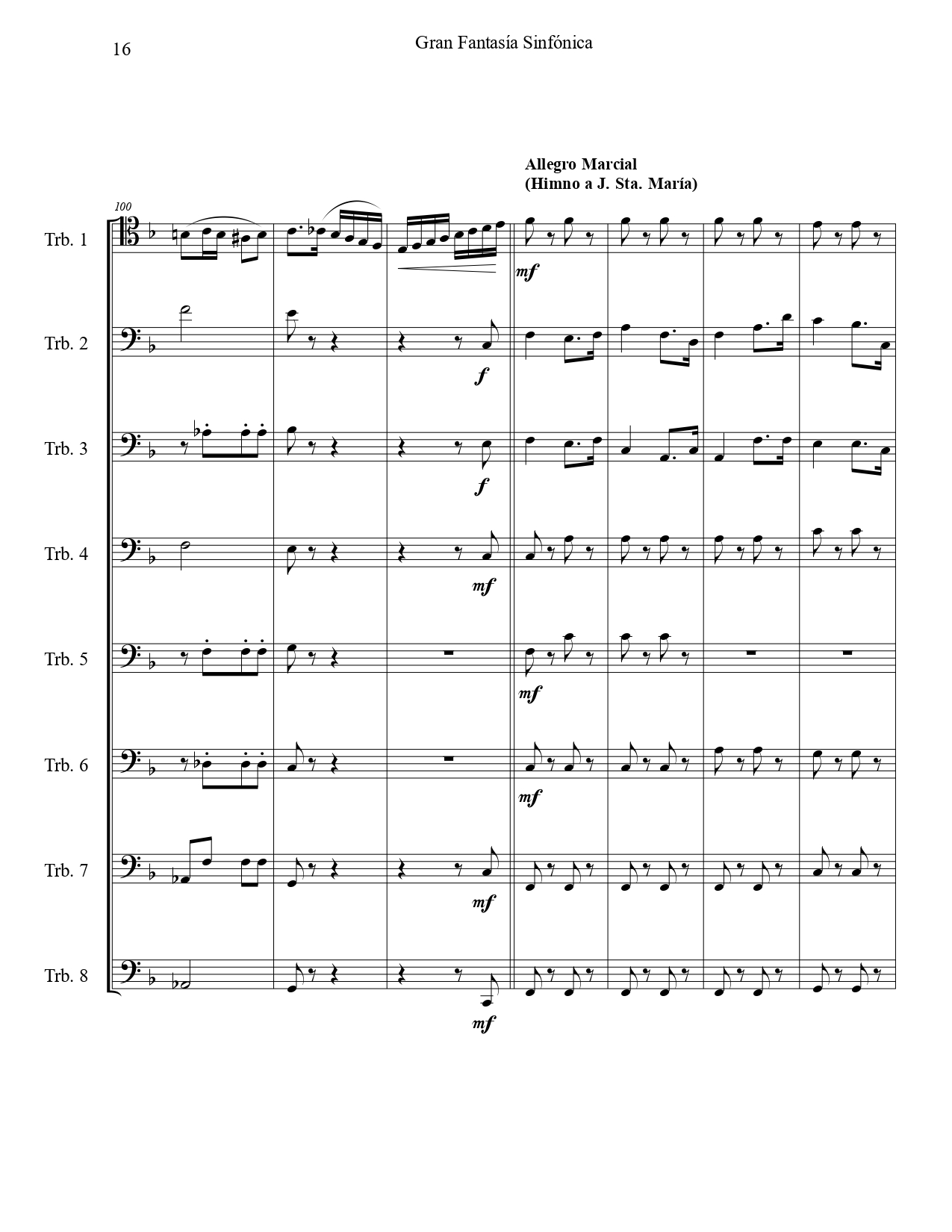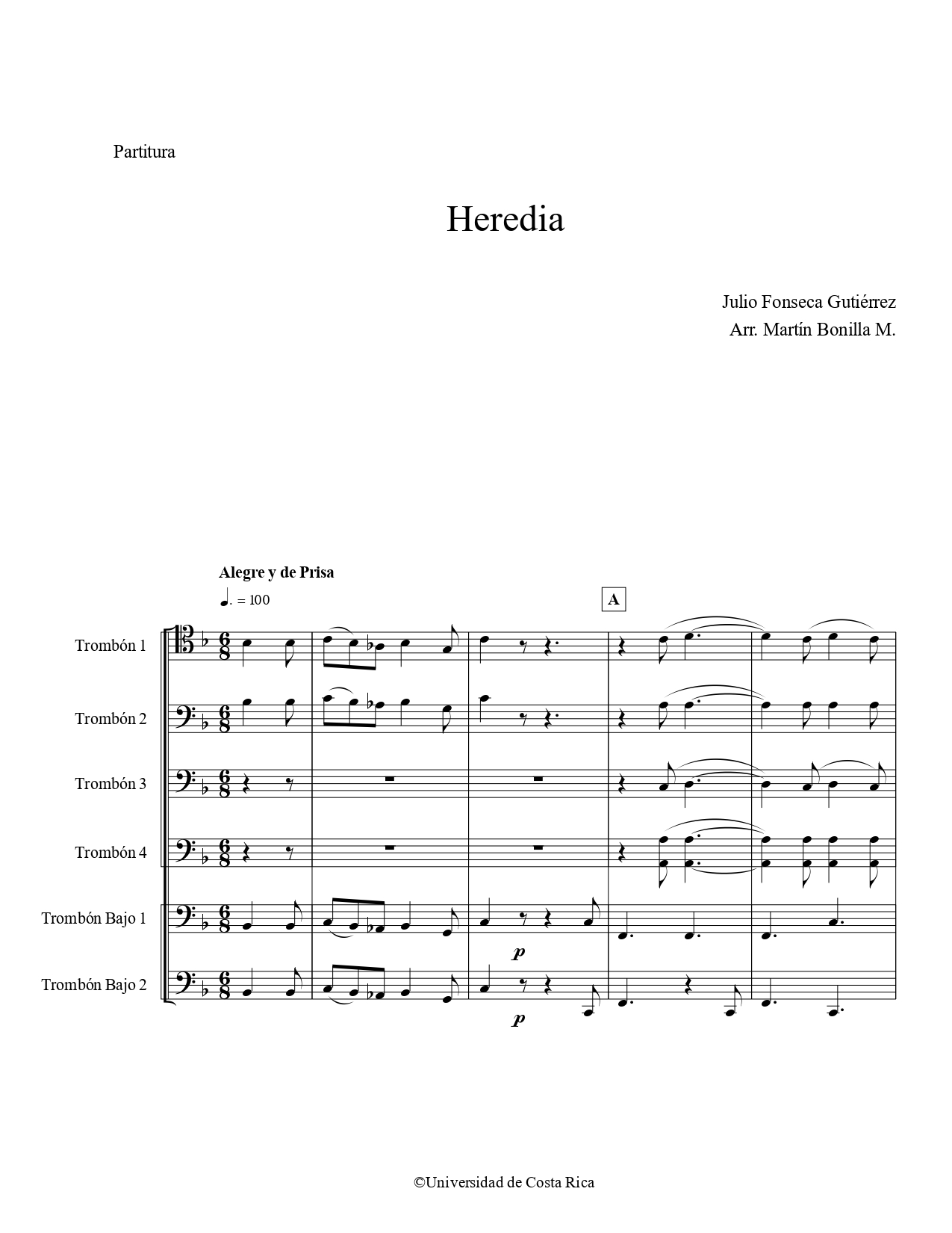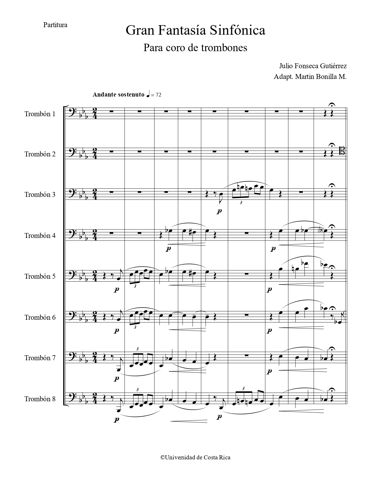 Cuatro obras de Julio Fonseca adaptadas para coro de trombones: Gran Fantasía Sinfónica, Marcha Heredia, Alma Tropical y Rayo de Sol