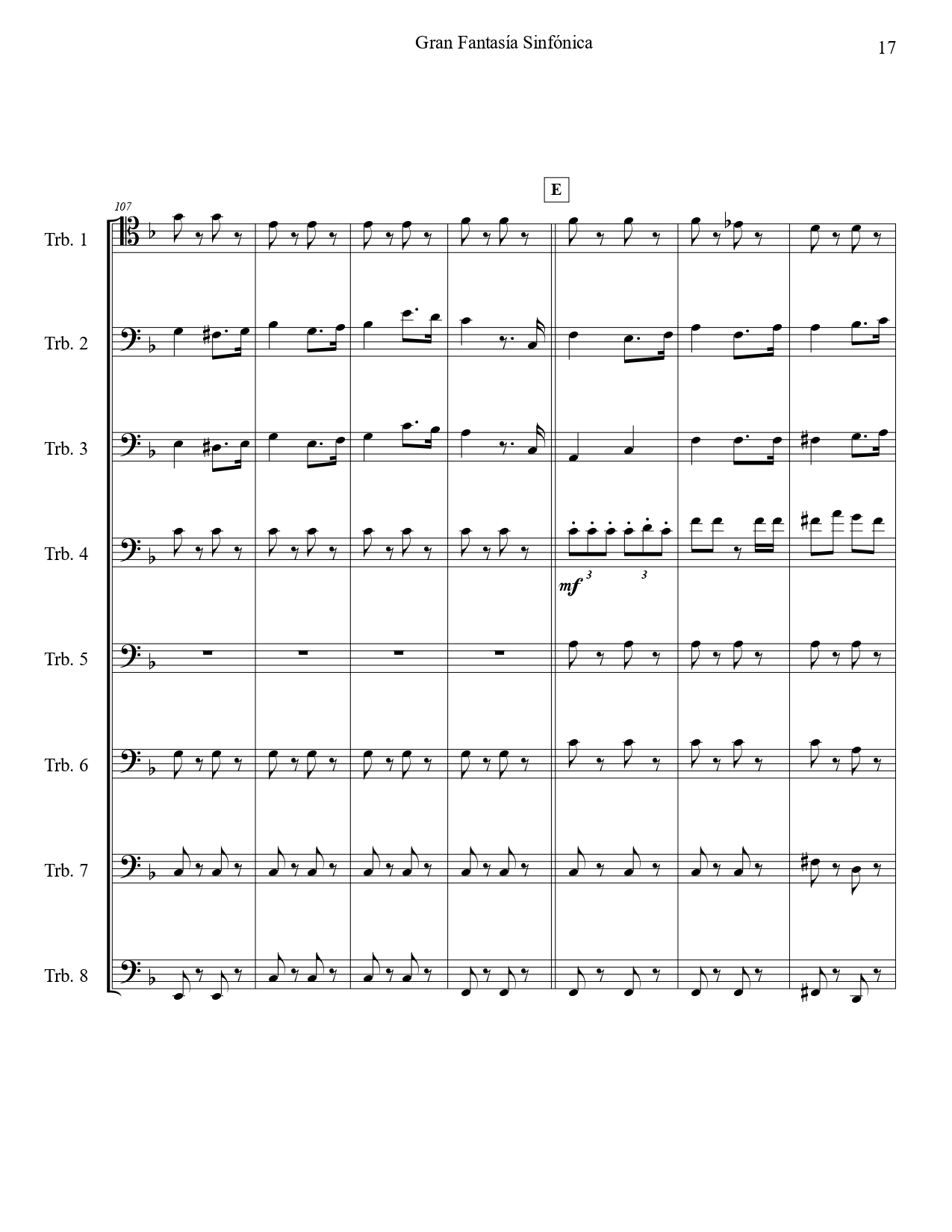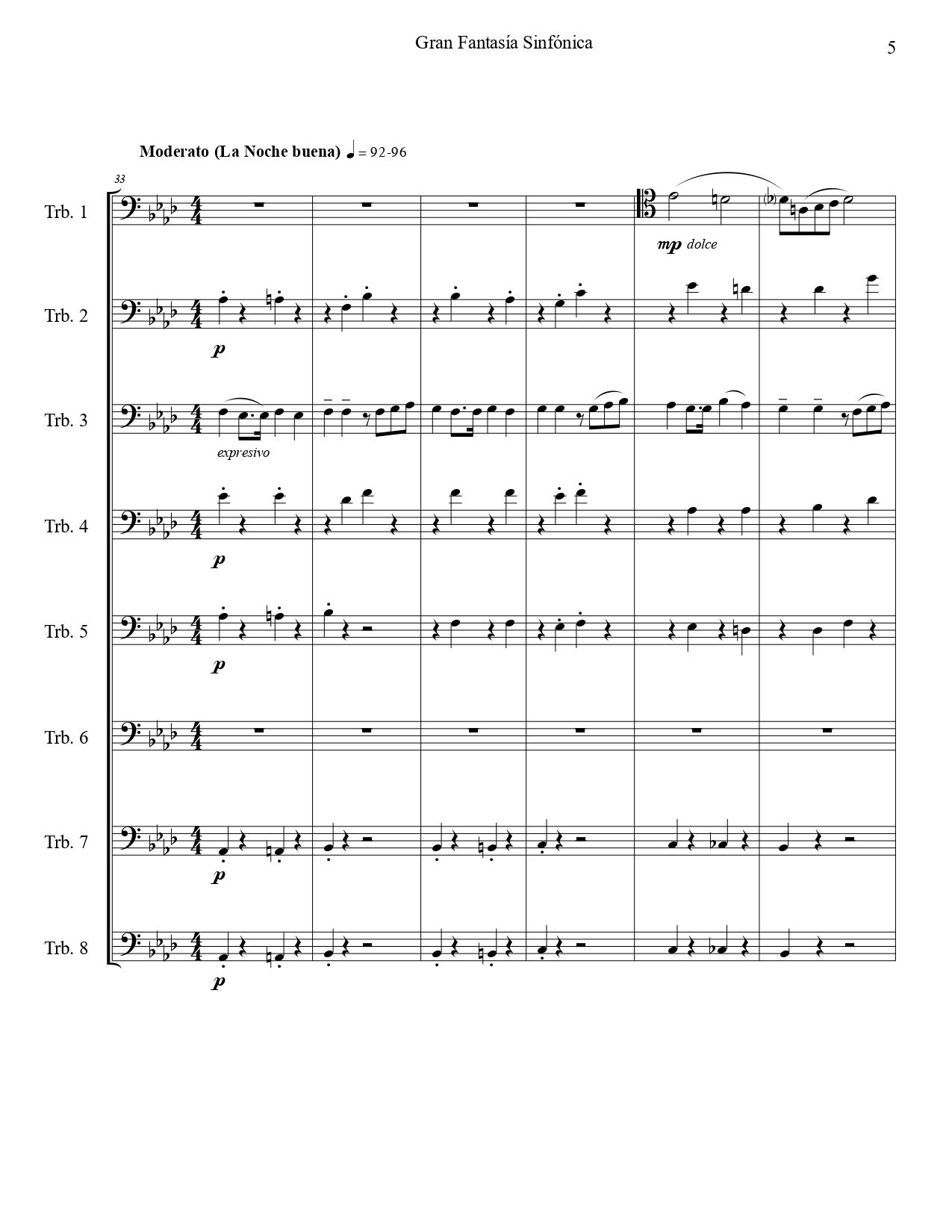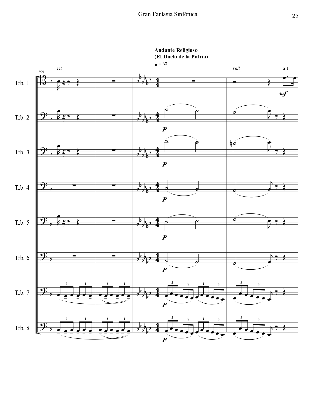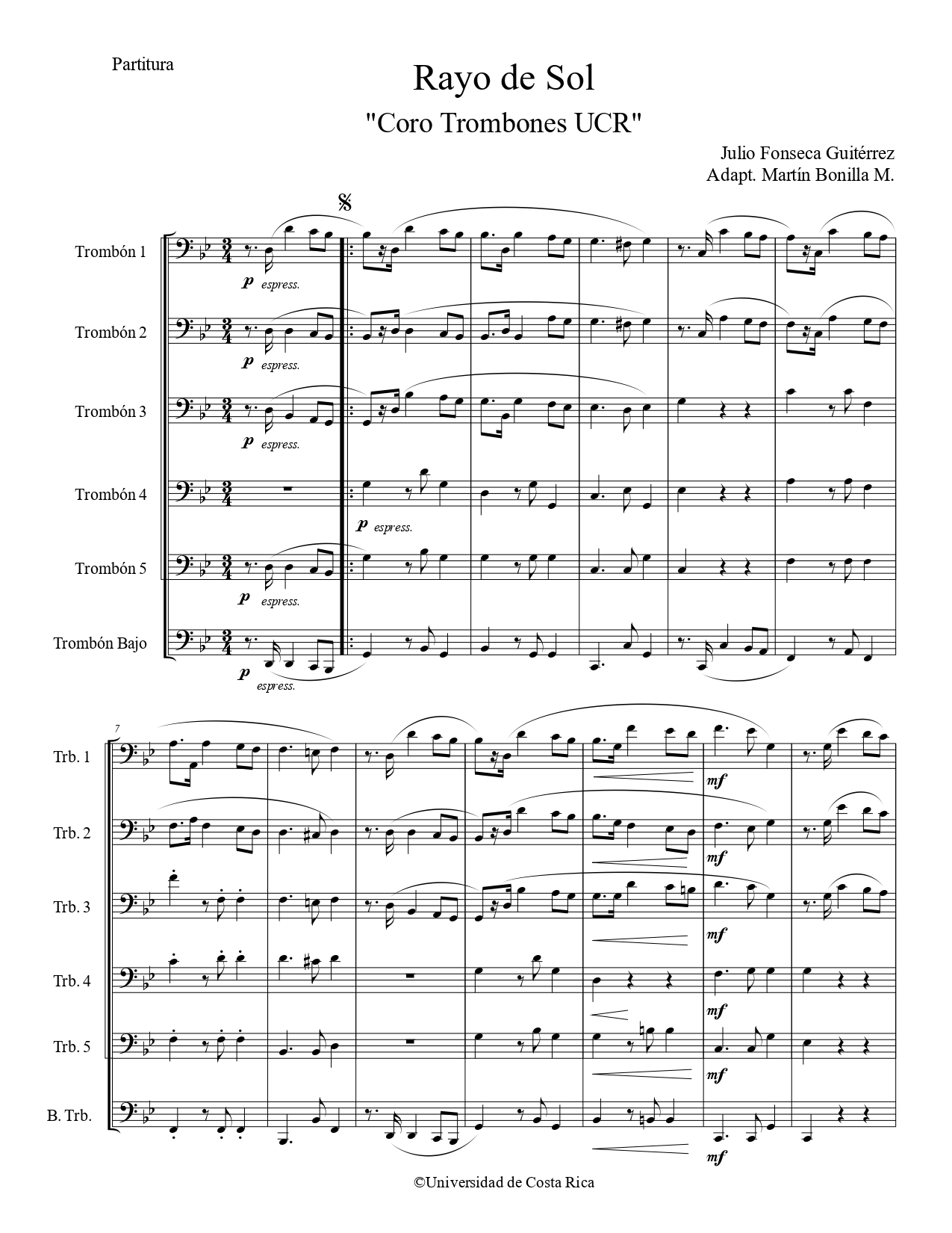 Cuatro obras de Julio Fonseca adaptadas para coro de trombones: Gran Fantasía Sinfónica, Marcha Heredia, Alma Tropical y Rayo de Sol