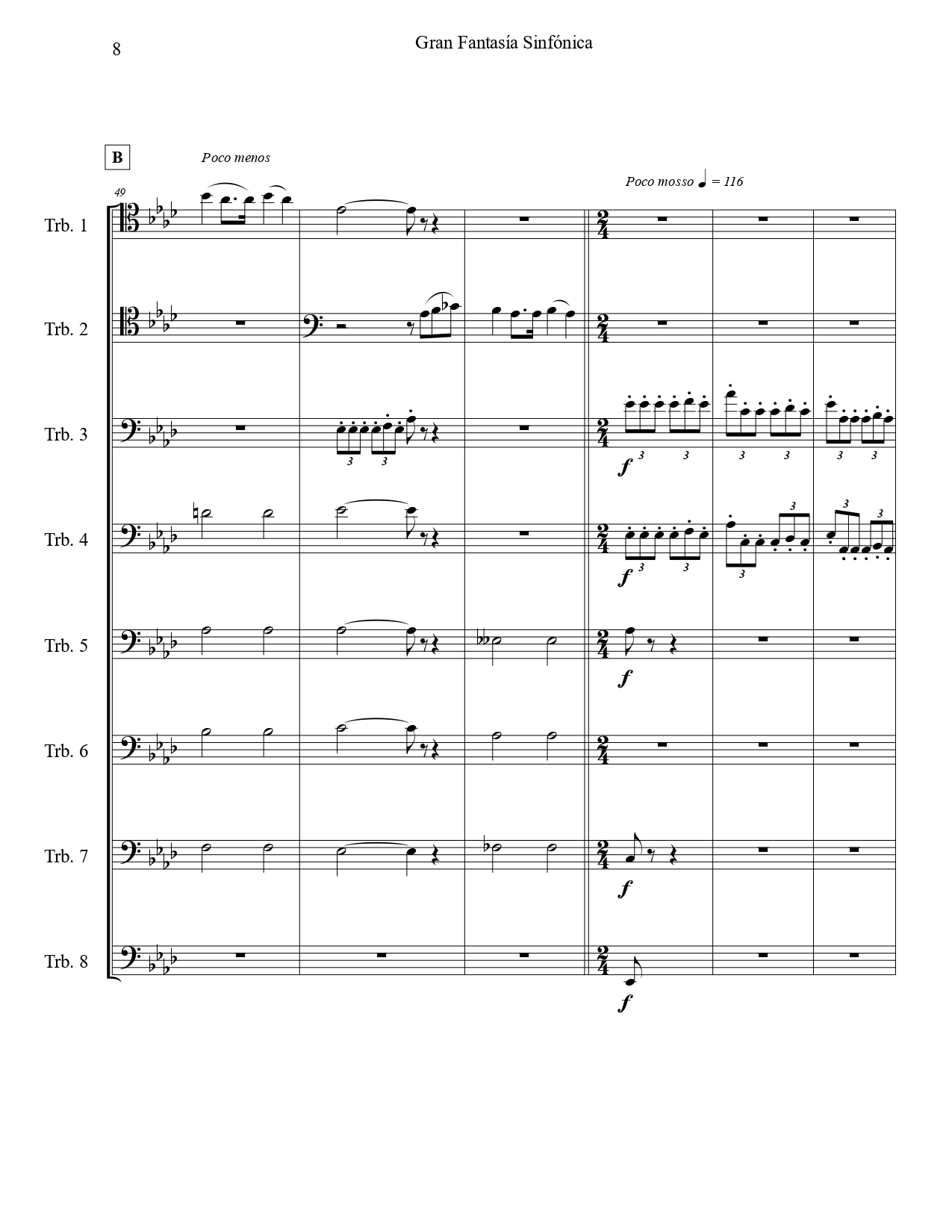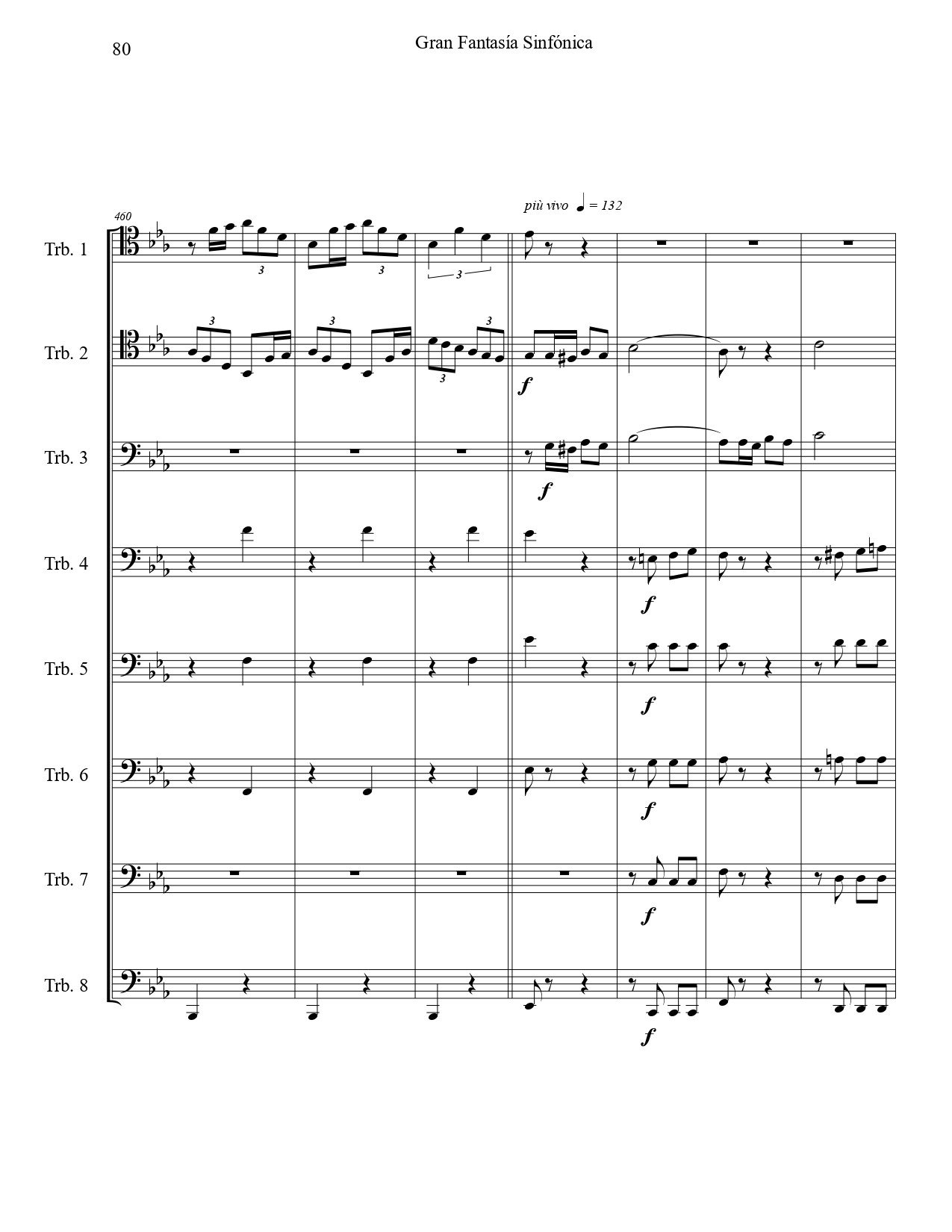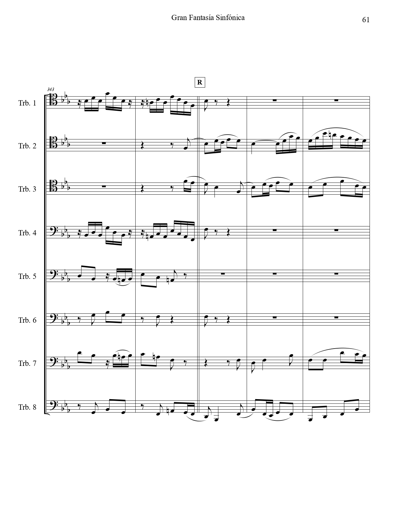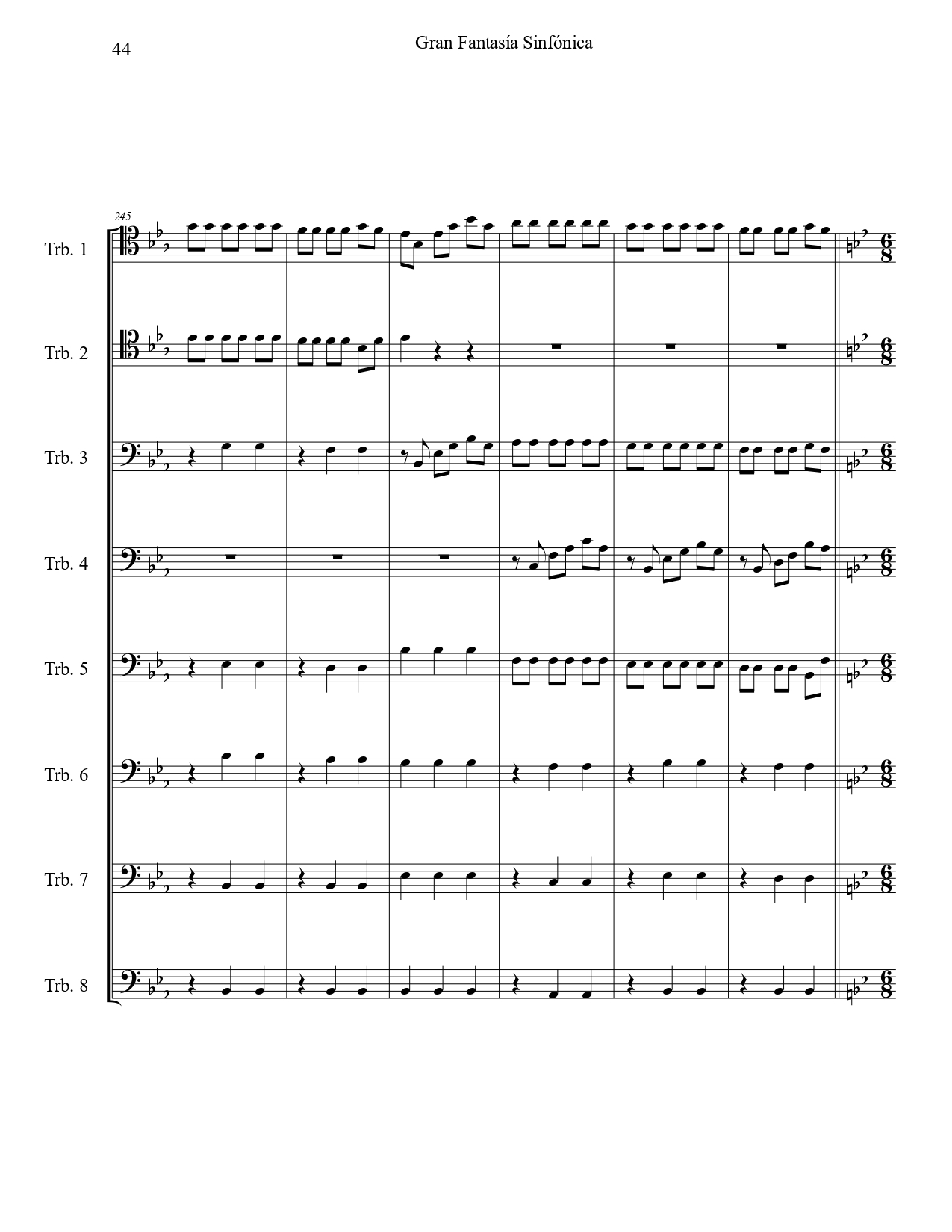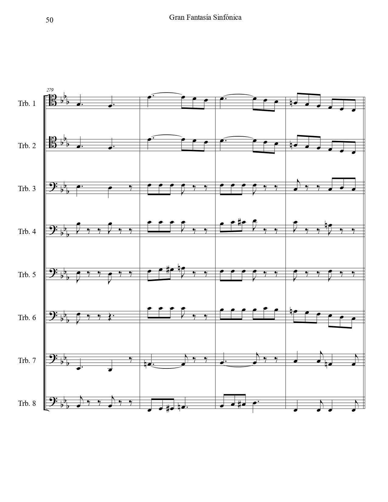 Cuatro obras de Julio Fonseca adaptadas para coro de trombones: Gran Fantasía Sinfónica, Marcha Heredia, Alma Tropical y Rayo de Sol