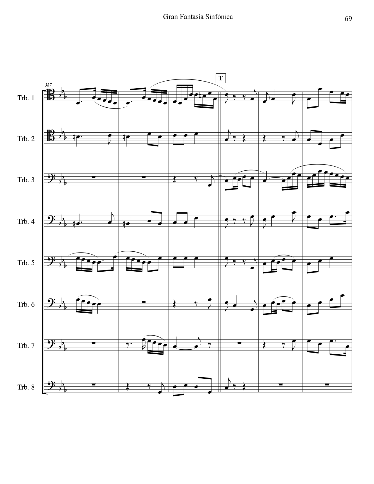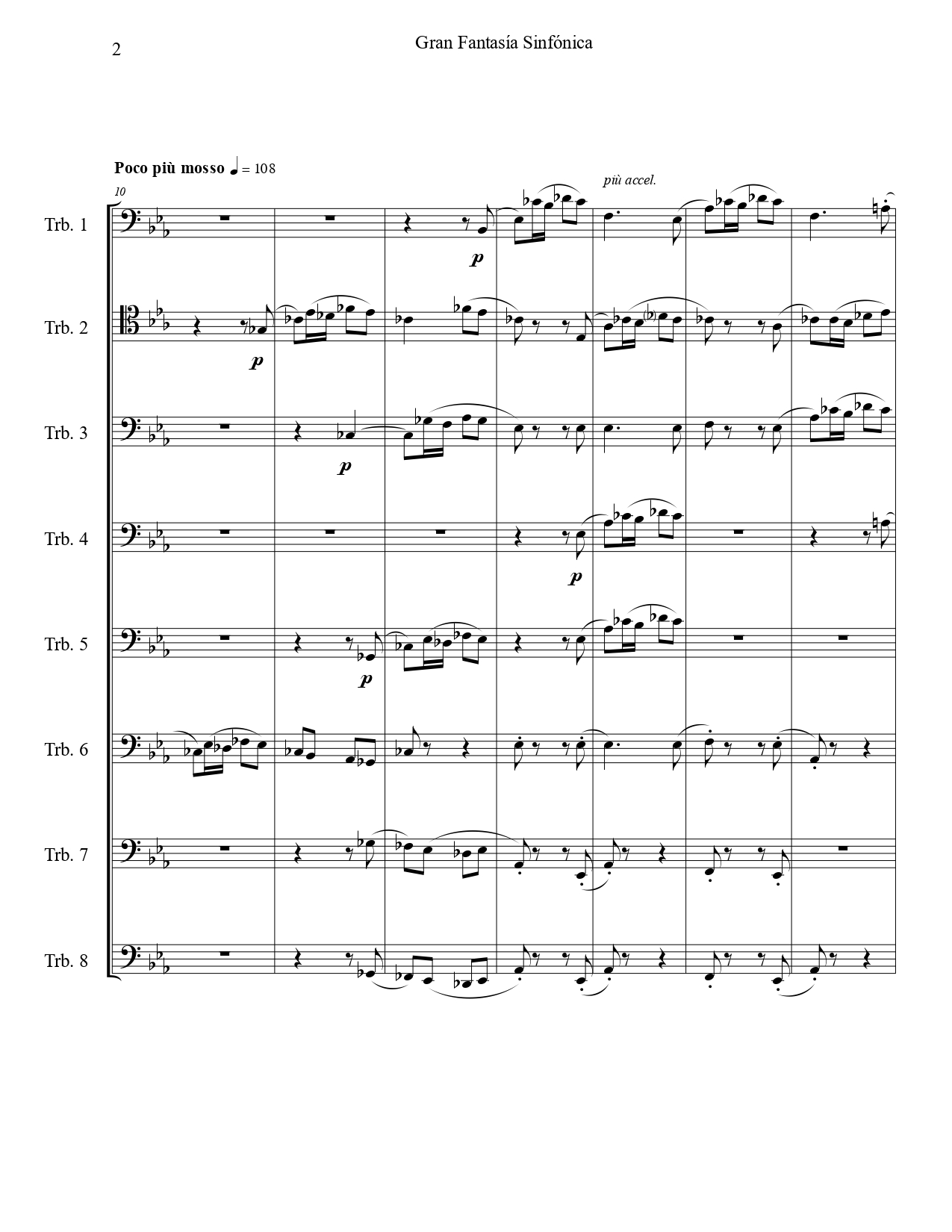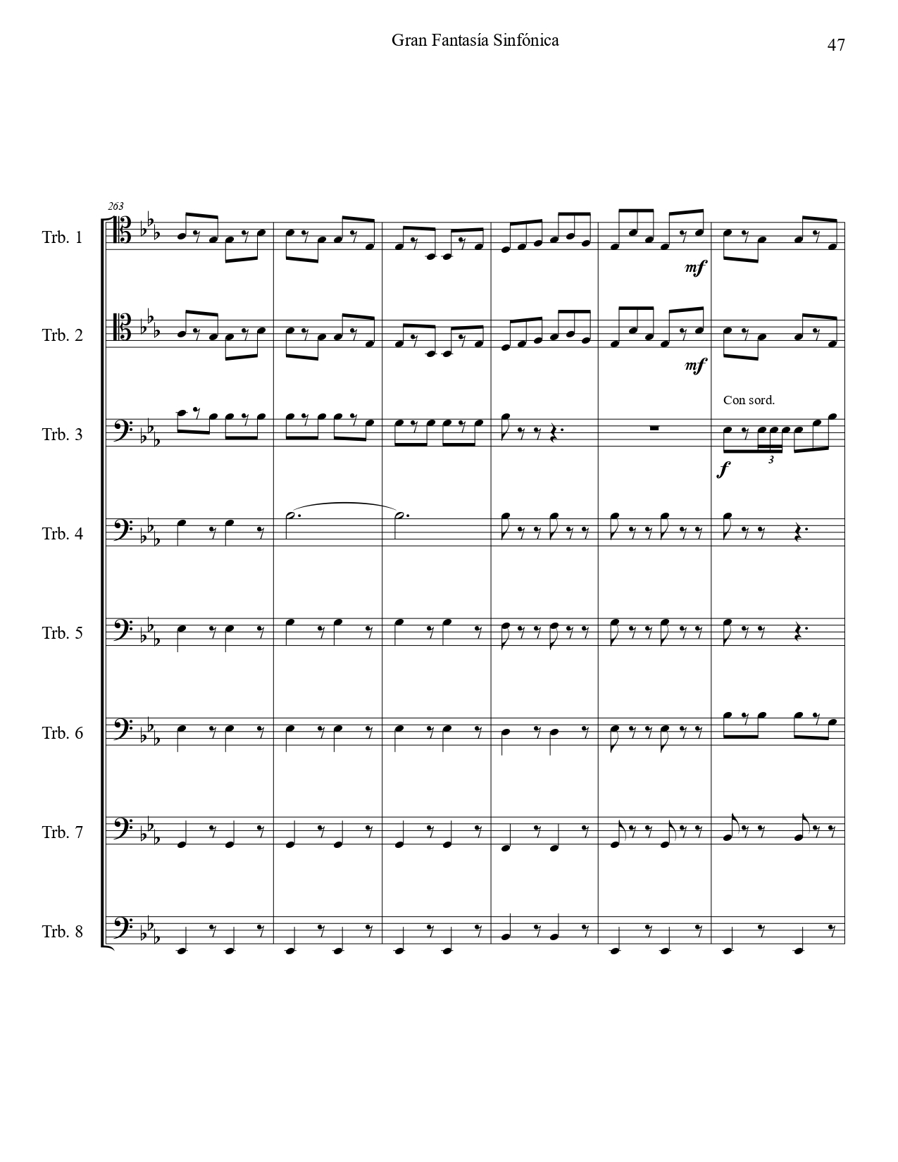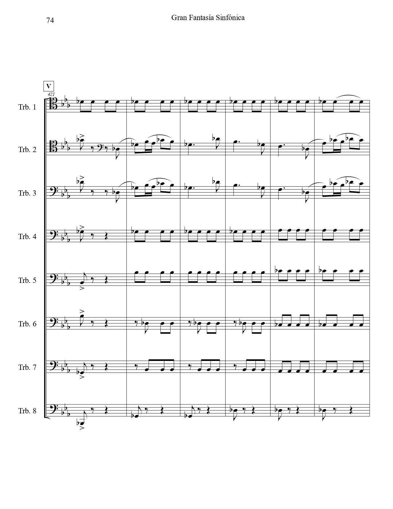 Cuatro obras de Julio Fonseca adaptadas para coro de trombones: Gran Fantasía Sinfónica, Marcha Heredia, Alma Tropical y Rayo de Sol