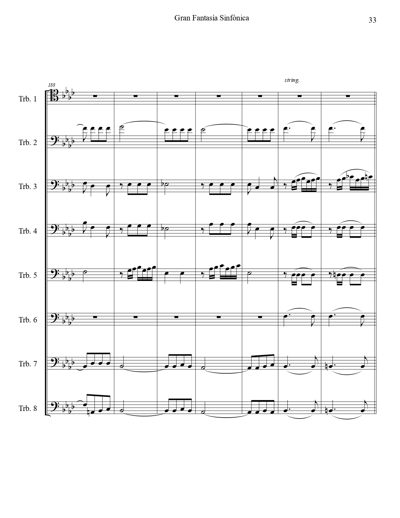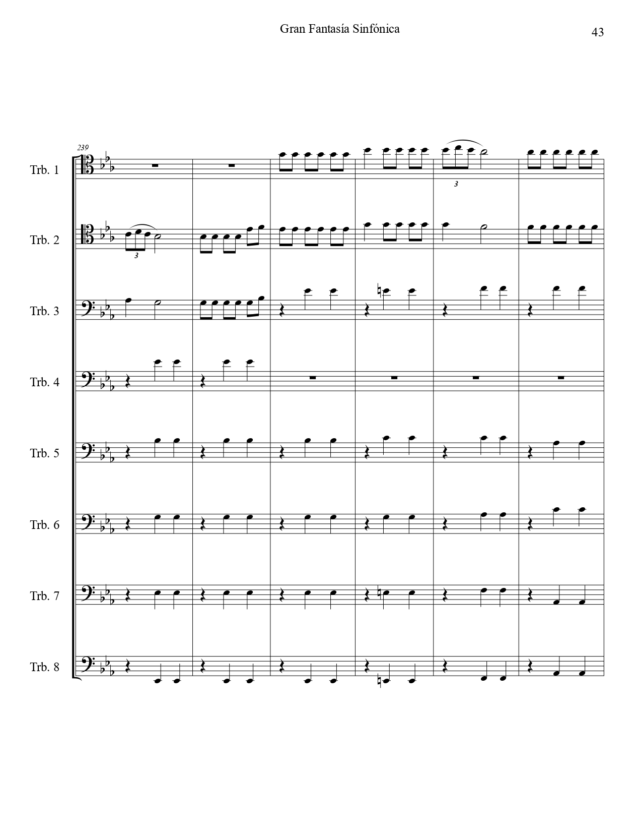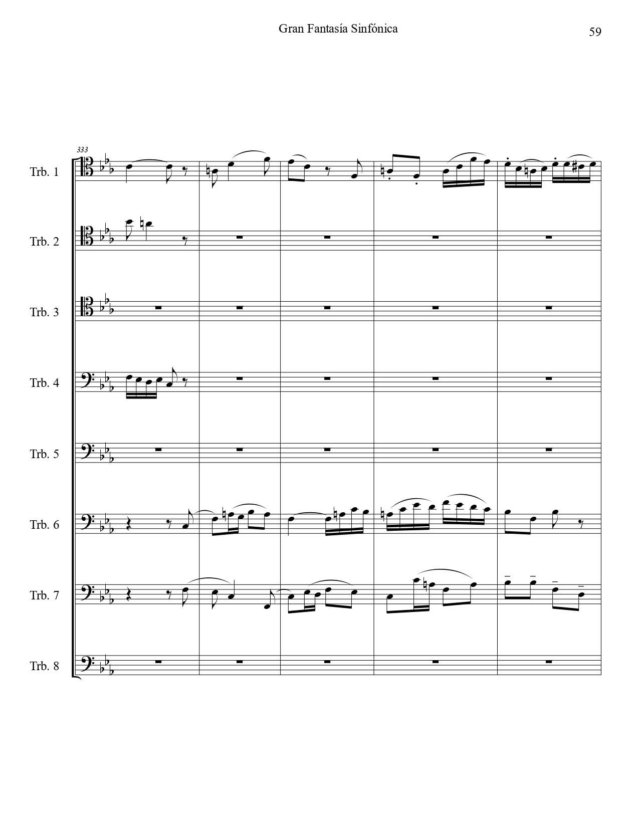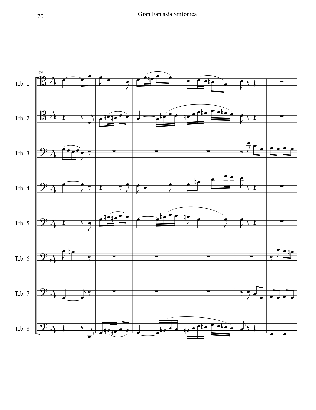 Cuatro obras de Julio Fonseca adaptadas para coro de trombones: Gran Fantasía Sinfónica, Marcha Heredia, Alma Tropical y Rayo de Sol