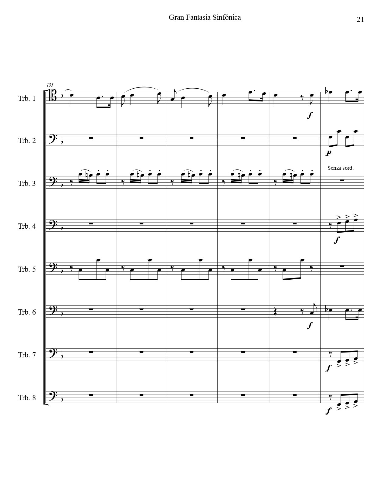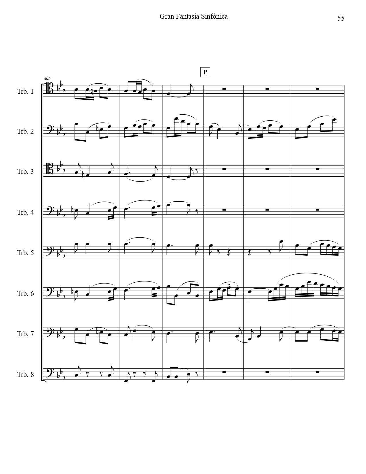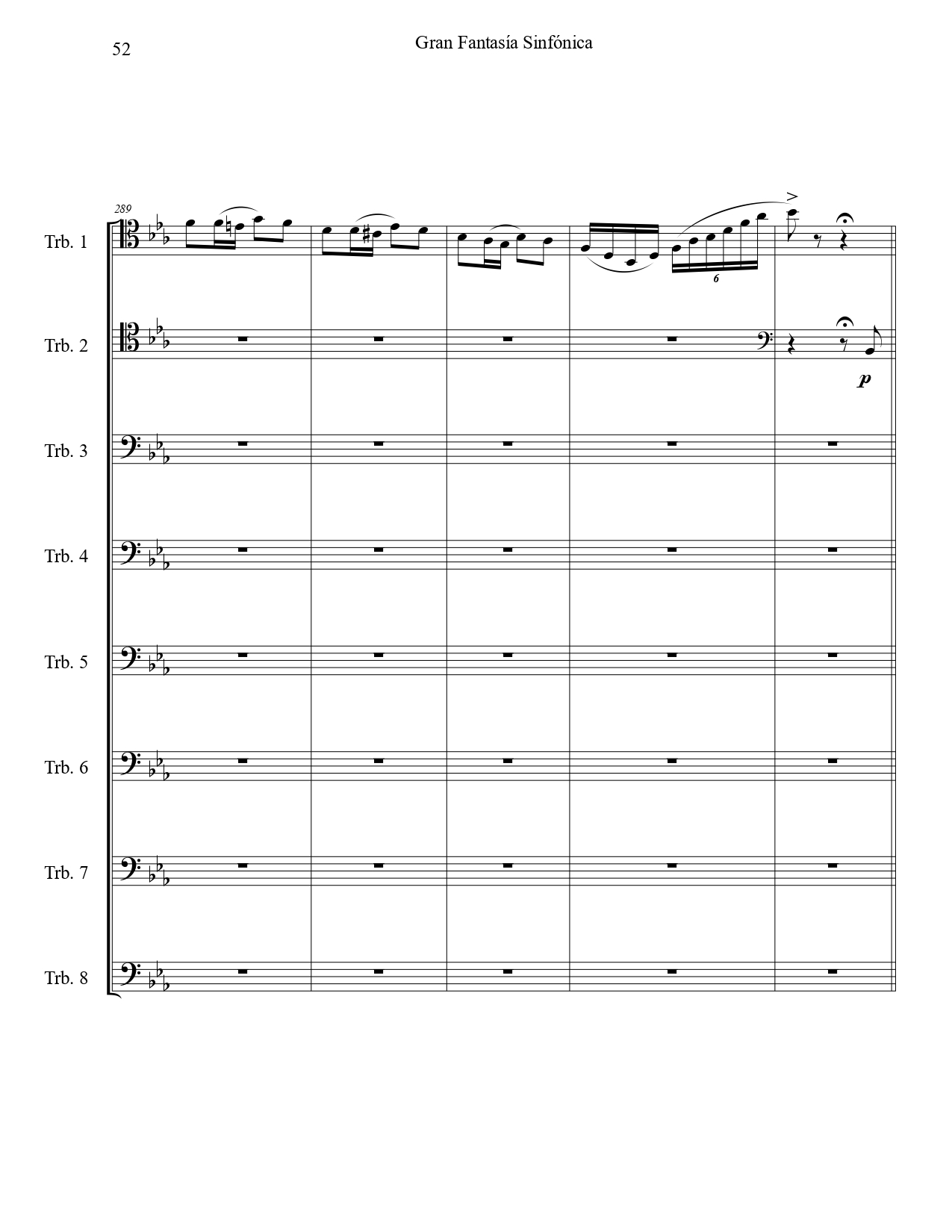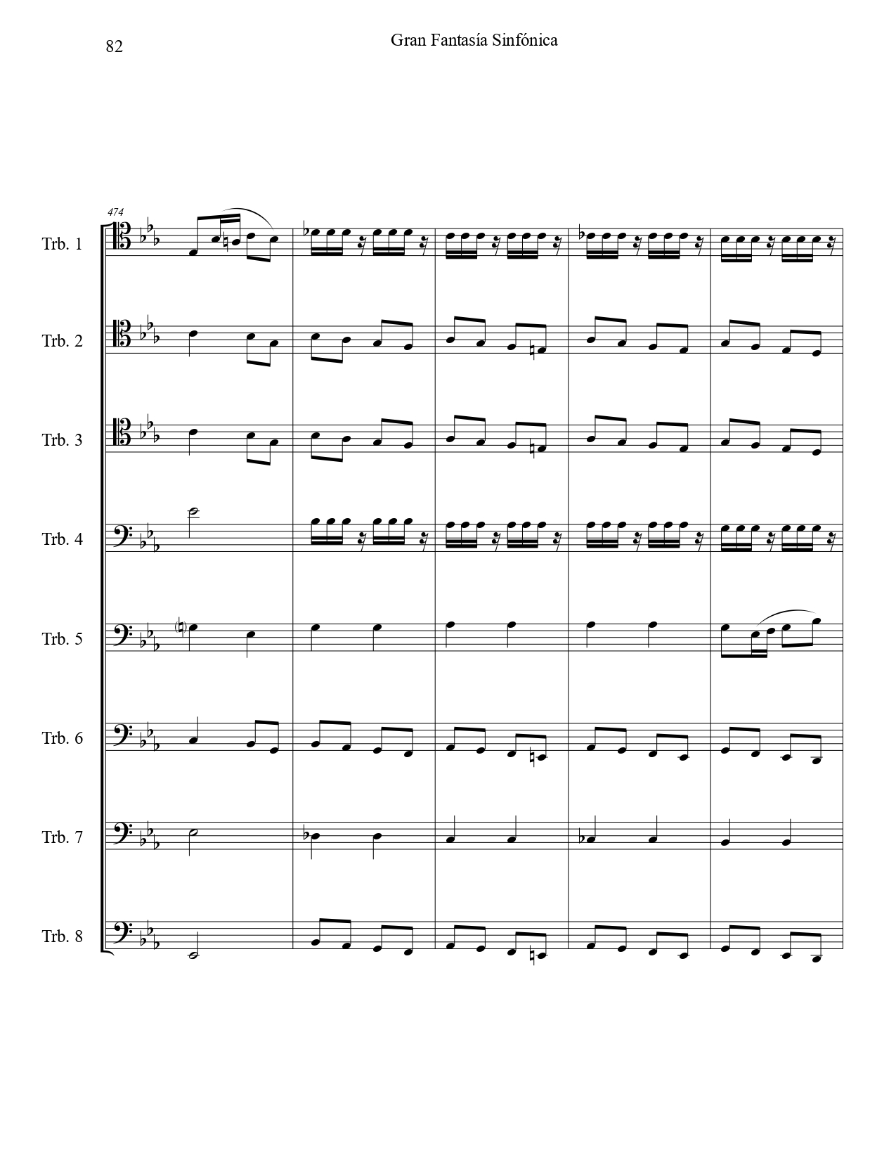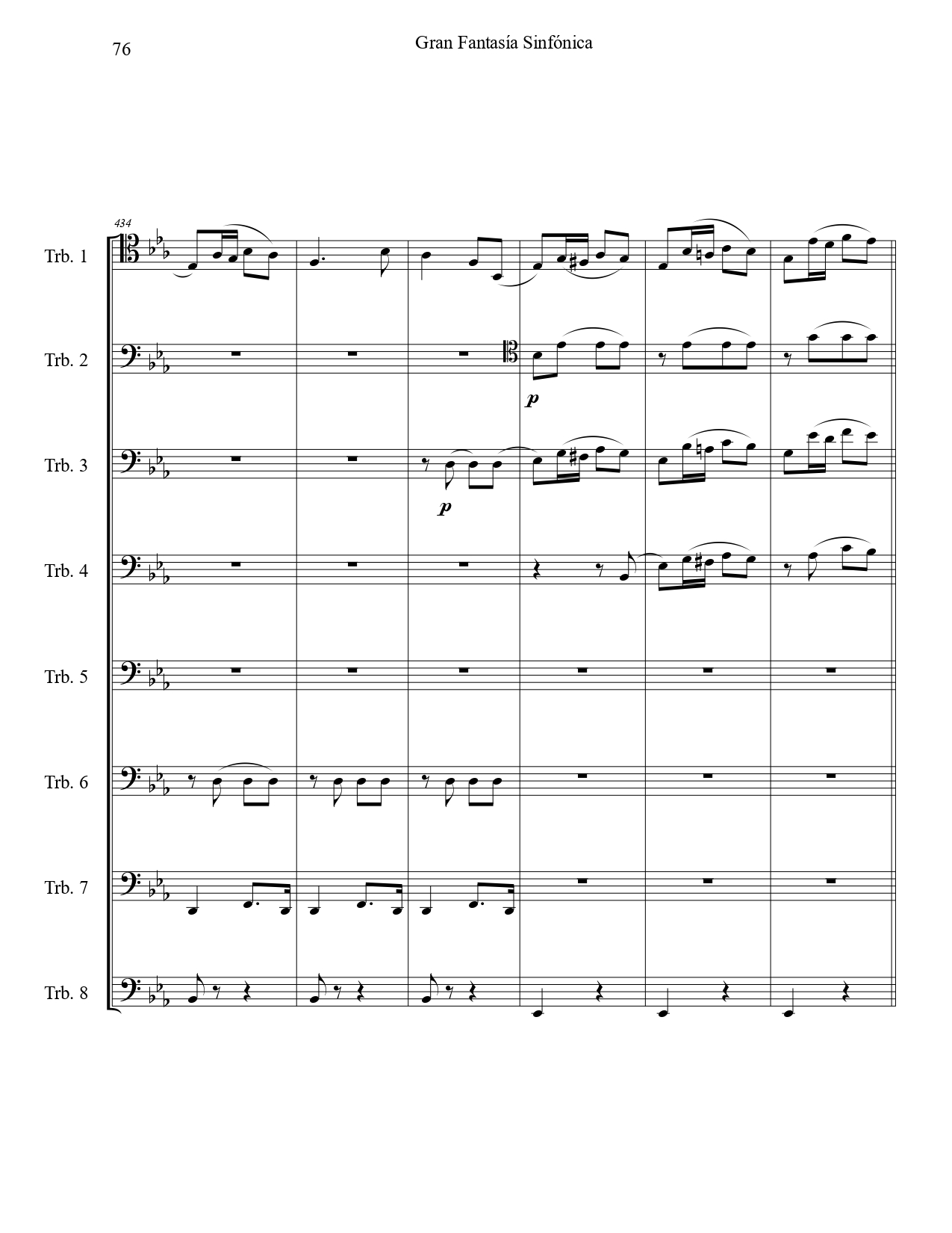 Para realizar este arreglo, se ha tomado como base el manuscrito original para piano del compositor. La obra ha sido arreglada para octeto de trombones; no obstante, por cuestión de sonoridad, se recomienda el uso de seis trombones tenores y dos trombones bajos (en algunos pasajes de la primera voz se podría utilizar el trombón alto). A su vez, se arregla un tono abajo de la tonalidad original y, por aspectos técnicos, en ocasiones, se bajan octavas y se simplifican algunos ritmos. La Gran Fantasía Sinfónica presenta un nivel alto de dificultad, especialmente en las tres primeras voces.