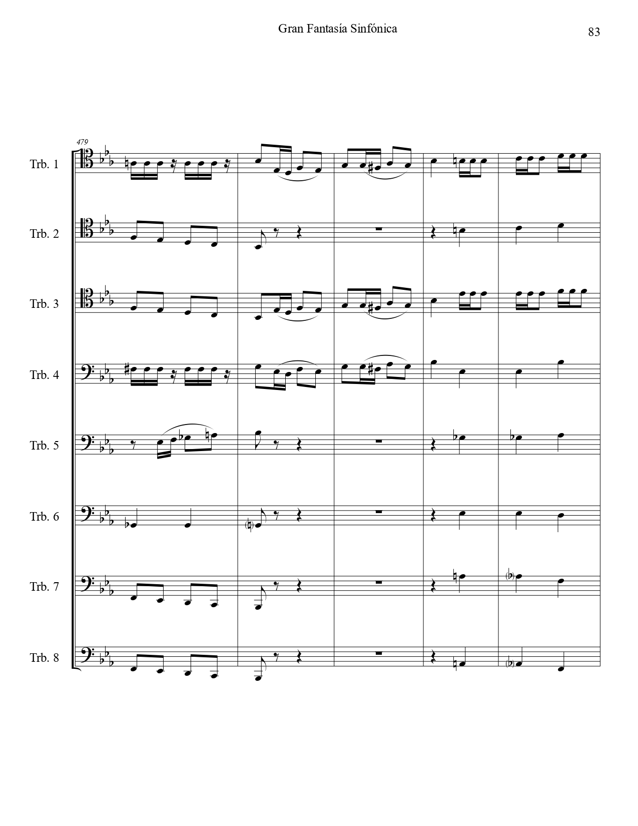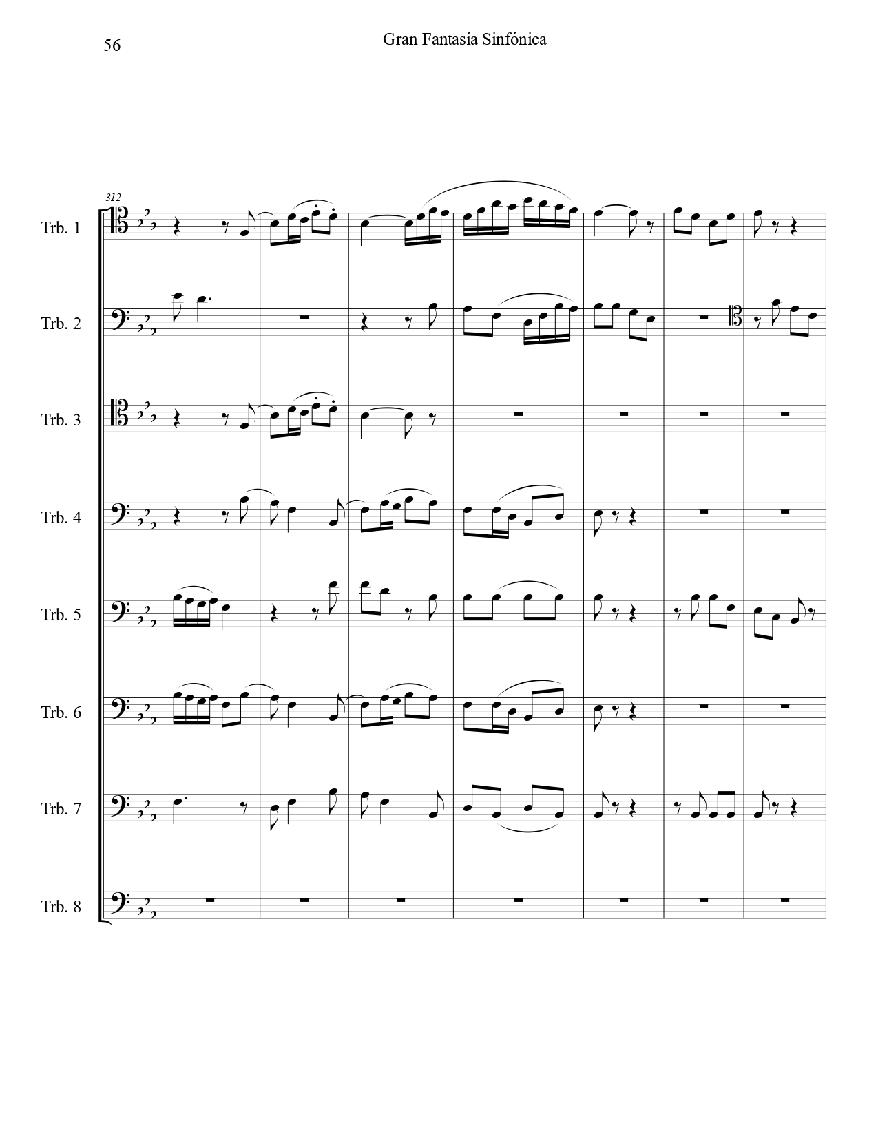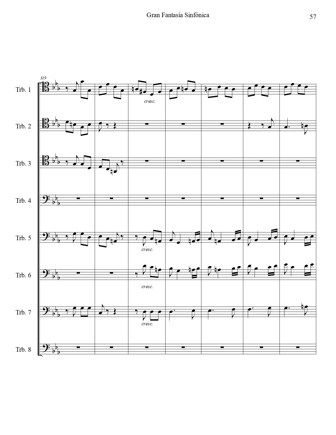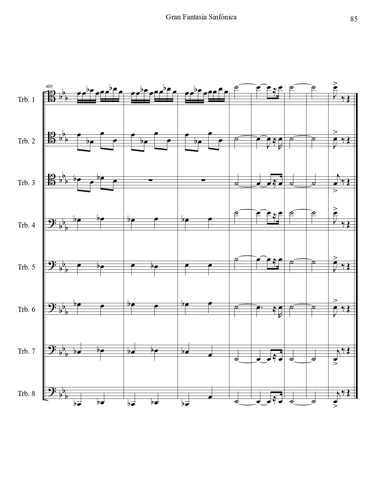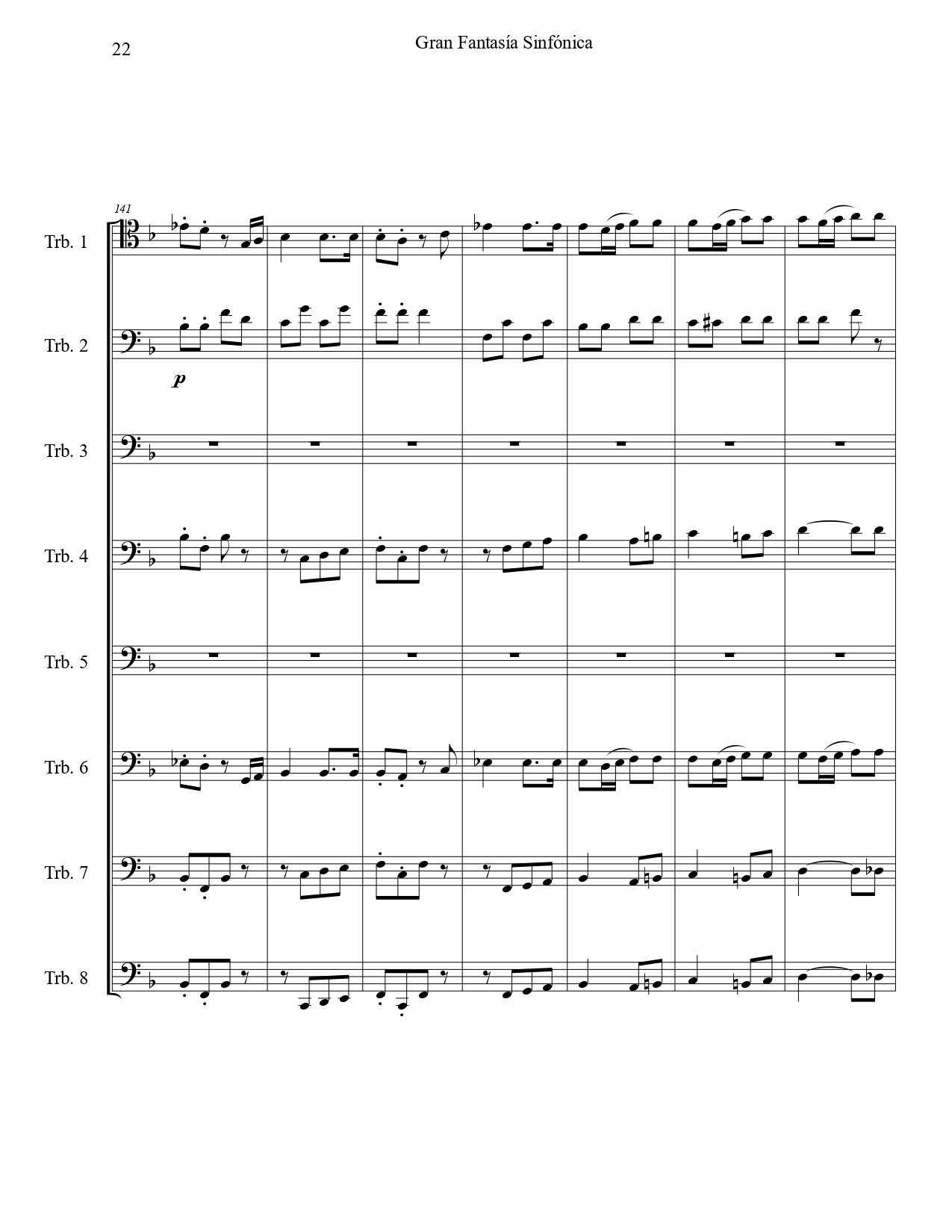 Para realizar este arreglo, se ha tomado como base el manuscrito original para piano del compositor. La obra ha sido arreglada para octeto de trombones; no obstante, por cuestión de sonoridad, se recomienda el uso de seis trombones tenores y dos trombones bajos (en algunos pasajes de la primera voz se podría utilizar el trombón alto). A su vez, se arregla un tono abajo de la tonalidad original y, por aspectos técnicos, en ocasiones, se bajan octavas y se simplifican algunos ritmos. La Gran Fantasía Sinfónica presenta un nivel alto de dificultad, especialmente en las tres primeras voces.