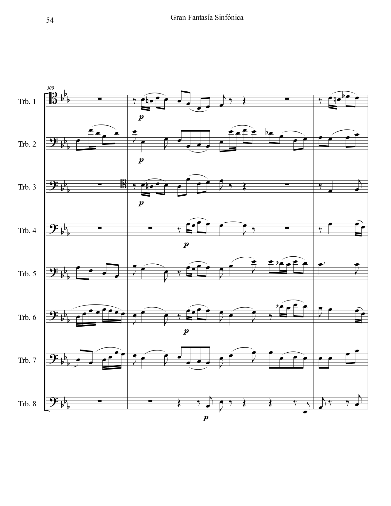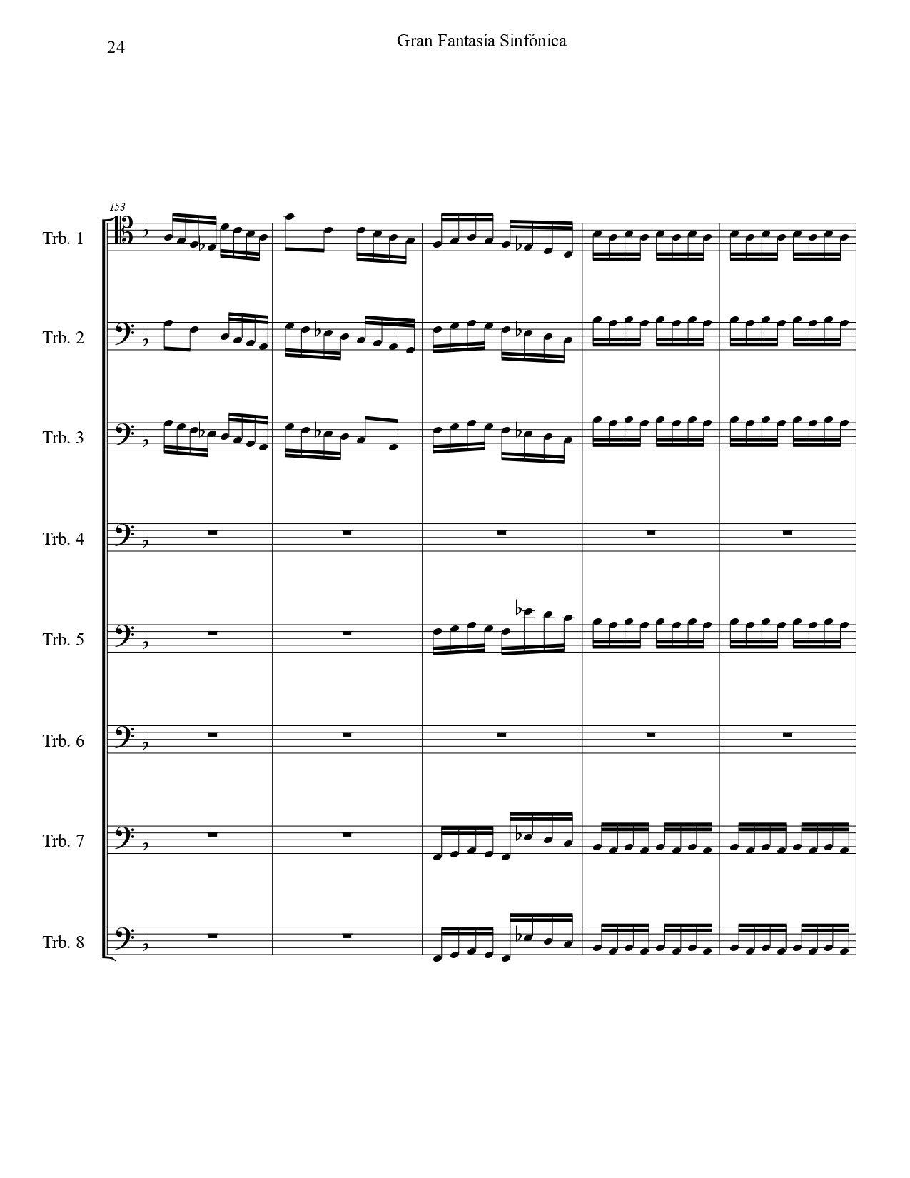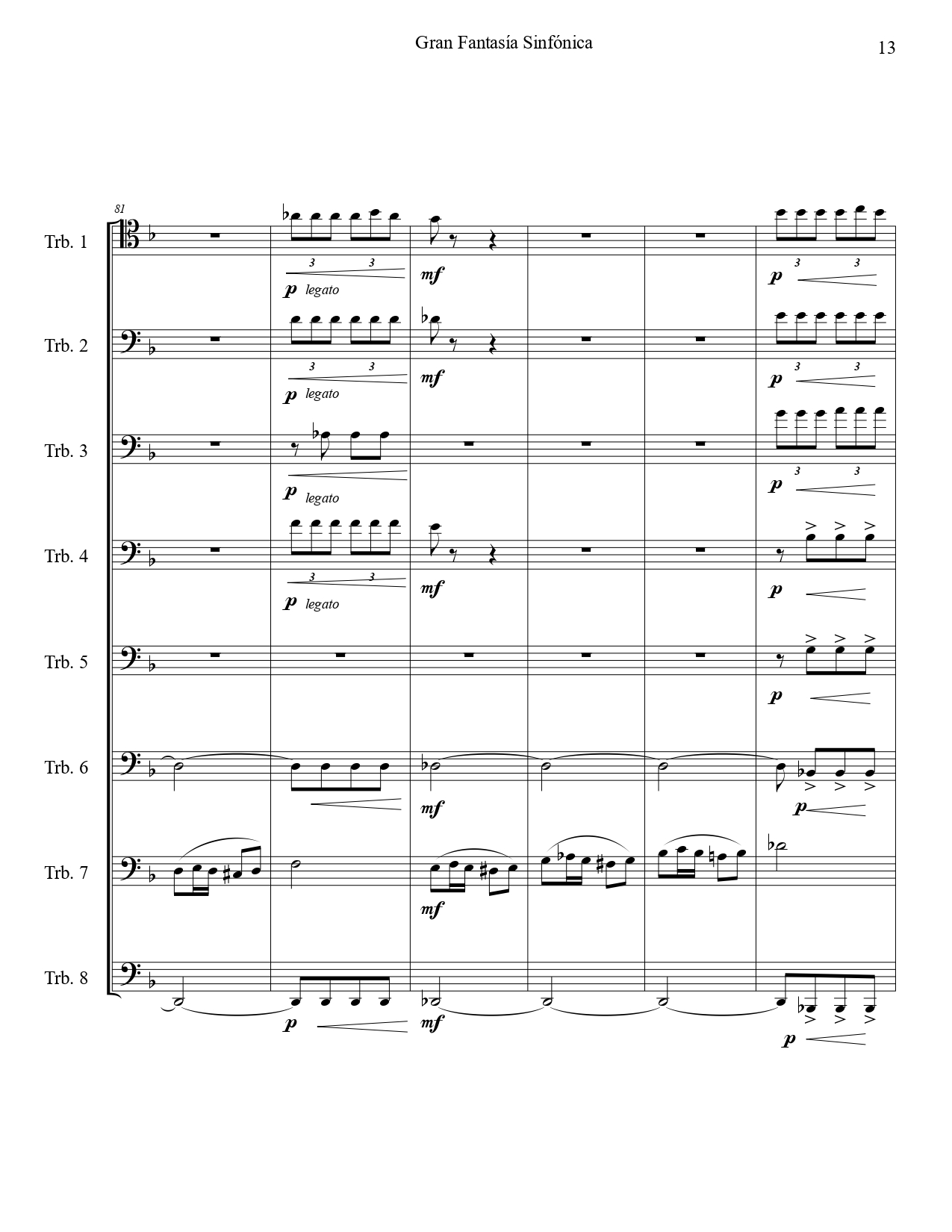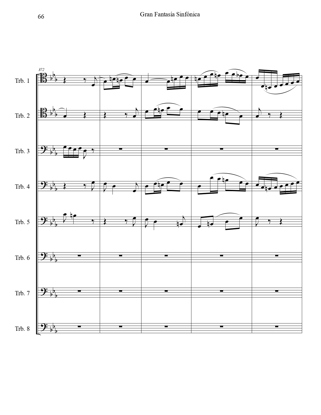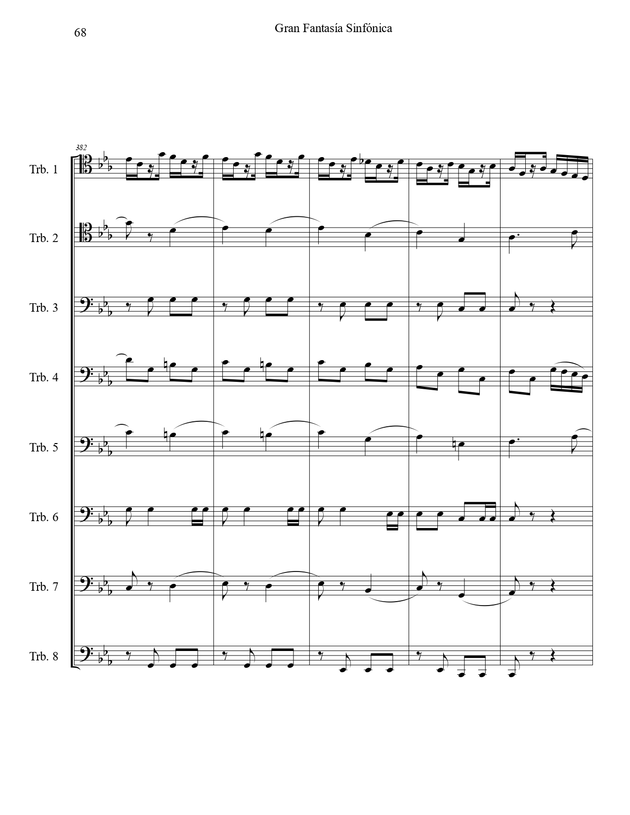Para realizar este arreglo, se ha tomado como base el manuscrito original para piano del compositor. La obra ha sido arreglada para octeto de trombones; no obstante, por cuestión de sonoridad, se recomienda el uso de seis trombones tenores y dos trombones bajos (en algunos pasajes de la primera voz se podría utilizar el trombón alto). A su vez, se arregla un tono abajo de la tonalidad original y, por aspectos técnicos, en ocasiones, se bajan octavas y se simplifican algunos ritmos. La Gran Fantasía Sinfónica presenta un nivel alto de dificultad, especialmente en las tres primeras voces.