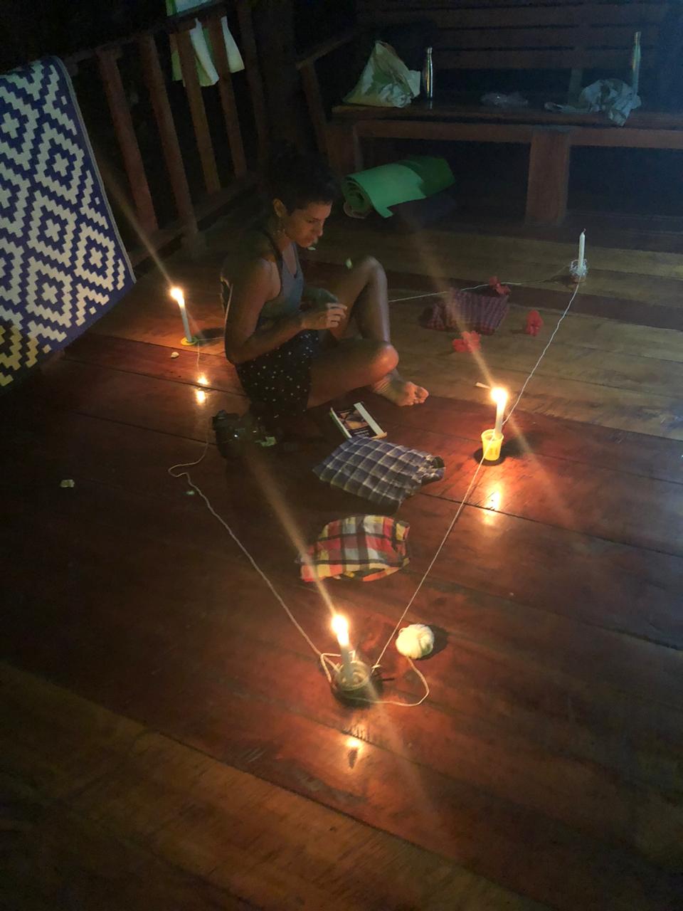 El ejercicio mencionado fue un elemento contundente dentro del proceso de autoconocimiento realizado durante la experiencia. Este se creaba mediante el acompañamiento individual y gracias a la retroalimentación de las demás compañeras. De este modo, al concluir esta dinámica, cada participante podía cerrar su propia experiencia contestando a la pregunta: ¿qué me pasó con respecto al trabajo de mis compañeras? Es así como la escena final se convirtió en el ejercicio de la instalación profundizado: incorporó la retroalimentación de las compañeras, la palabra, las acciones, los textos propios y otros recursos, con el fin de ‘palabrear’ una pregunta vital.
