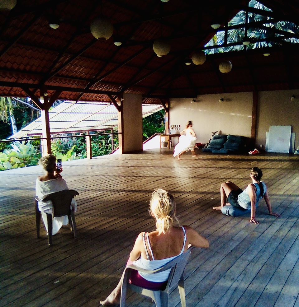 Tal y como se mencionó anteriormente, la primera parte del estudio consistió en un laboratorio escénico aplicado en tres ocasiones distintas: marzo, abril y mayo del 2020; octubre y noviembre del 2020; mayo y junio del 2021. Cada taller se realizó en espacios físicos distintos: Tree House Lodge (Punta Uva), Centro Holístico Shaila (Playa Chiquita) y Om Cashews Hill (Puerto Viejo). Además, cada uno de estos laboratorios se realizó con tres grupos distintos de mujeres mayores de edad, a excepción de una participante menor de edad que estuvo presente en los tres talleres; el rango de edad de las involucradas estuvo entre los 35 y los 75 años.