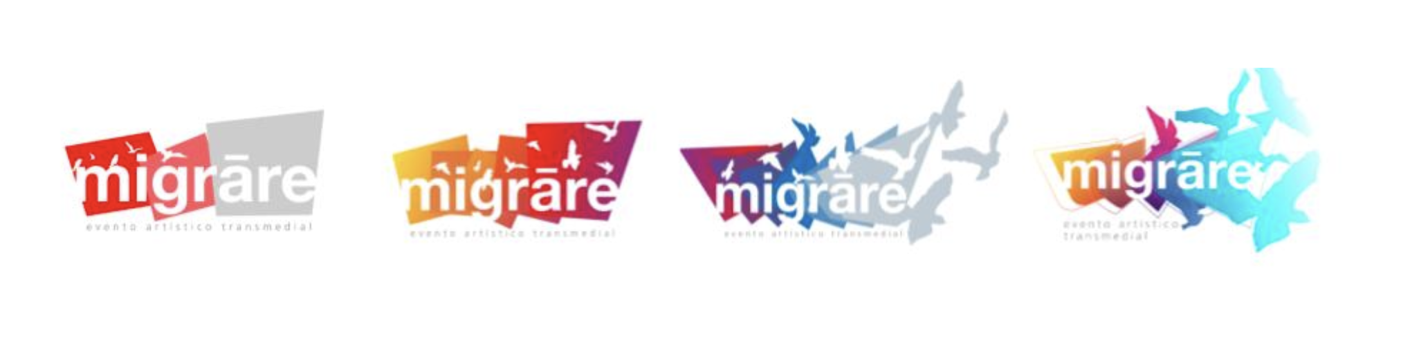 Otro elemento interesante es que, para el lanzamiento de esta convocatoria, el M.Ed. Malkon Alfaro C. del programa iAT ya se encontraba trabajando en el área del diseño gráfico de Migrāre. Gracias a este trabajo, se resaltó visualmente la idea de la transformación, en coherencia con el concepto, el traslado y la migración del proyecto. Por lo tanto, desde el afiche de la convocatoria hasta la tercera socialización, se observa una evolución del logo en los colores, las formas, la cantidad de aves y la cohesión de estas. En la Figura 2 se puede visualizar esta evolución.