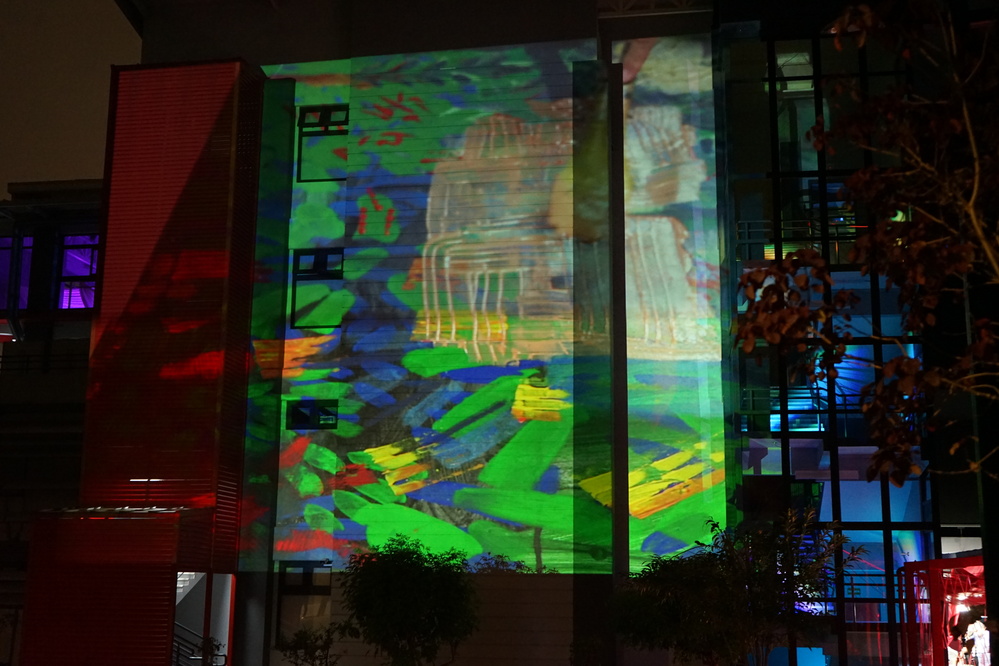 Este video fue parte del material visual proyectado sobre el edificio del Complejo Artístico, además del material visual desarrollado por el Lic. Federico Brenes Burgos, los cuales, juntos, marcaban el espacio de encuentro del inicio y el final del recorrido. Otro aporte muy importante en este momento del evento fue la intervención pictórica en vivo del M.Sc. José Pablo Solís Barquero, la cual llamaba a la transformación de este espacio desde el primer encuentro con las personas espectadoras, de manera que inspiraba la idea de trazos y marcas de nuestra propia migración (véase la Figura 3).