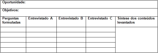 Os dados foram coletados por meio de entrevistas orientadas por roteiro com perguntas padronizadas e específicas para cada público, caracterizando um levantamento qualitativo (Gibbs, 2009). Dos depoimentos coletados, foram extraídas as palavras-chave, ou seja, as unidades semânticas (Bardin, 2007) que representassem a essência de cada pergunta por entrevistado. Para realizar o tratamento dos dados, foi utilizada uma planilha, na qual as perguntas foram distribuídas na primeira coluna vertical da esquerda e nas demais, no sentido à direita, foram inseridas as respostas de cada entrevistado. Na sequência, por meio de várias leituras das repostas, no sentido horizontal da planilha, foram feitas as reduções que resultaram nas sínteses para as análises subsequentes (Bardin, 2007). O modelo da planilha encontra-se no Apêndice B.