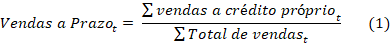 Só está sob análise a parcela do montante que possa sofrer inadimplência por parte dos compradores, ou seja, o montante representativo de bens e serviços que foi entregue ao interessado sem a contrapartida financeira no mesmo tempo, havendo, portanto, uma concessão de crédito para este agende comprador. Logo, a primeira variável a se reconhecer é a parcela de vendas a prazo da empresa ou organização através da concessão de seu crédito, que pode ser demonstrada através da fórmula abaixo.