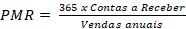O Prazo Médio de Recebimento (PMR) pode ser estipulado utilizando-se da seguinte fórmula ( Gitman, 2010):