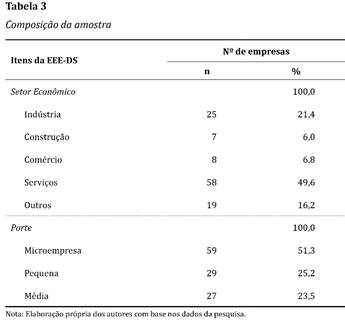 Dos empreendedores, 75,2% são homens e 24,8% são mulheres, sendo 51,3% microempresas (Padovez-Cualheta et al., 2019). Além disso, 75,2% possuem nível superior. Em relação ao período de operação, 47% possuem menos de 5 anos; 66,4% menos que 10 anos, e; 79,2% menos que 20 anos. A Tabela 3 apresenta a composição da amostra.